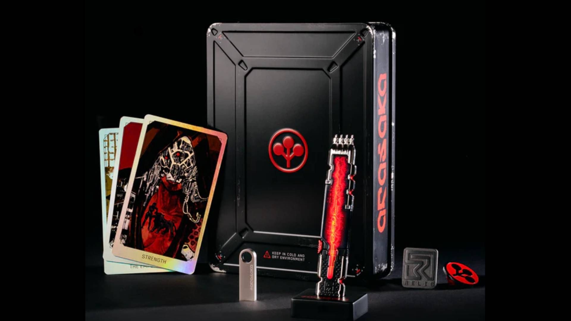 Этот коллекционный набор включает в себя стальной корпус, разработанный так, чтобы напоминать сверхсекретные технологии Arasaka – словно он был украден непосредственно из корпорации. Внутри вы найдете предметы, связанные с ранними днями V в Найт-Сити, в частности, катастрофической ограбление в Konpeki Plaza, включая реплику Biochip Relic.
