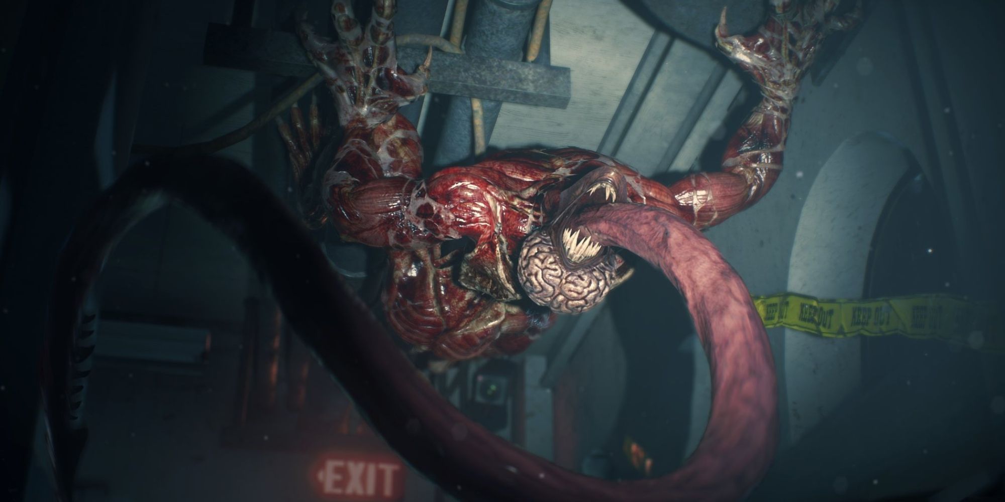 Ужасающий враг из ремейка Resident Evil 2 2019 года, известный как Ликер со своим обнажённым мозгом и жуткими зубами, показан нападающим на Клэр Редфилд. Удивительно, но некоторые люди теперь находят это существо милым, даже несмотря на его пугающий вид.