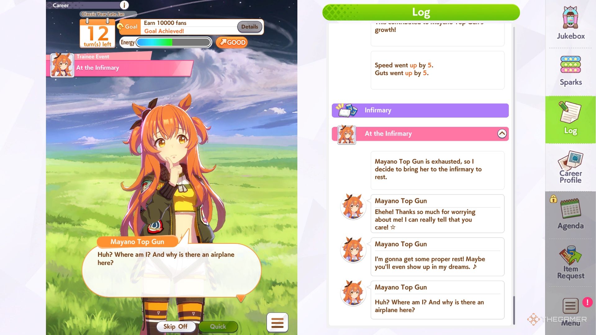 Окей, так что Маяно Топ Ган действительно потрясающая, но она немного мечтательница. Как её тренер, моя задача — помочь ей сосредоточиться и действительно найти свою мотивацию. Если я правильно её потренирую, выберу лучшие карты поддержки и немного повезёт, я смогу довести её до финала URA и победить! Давайте приступим к тому, чтобы это случилось.