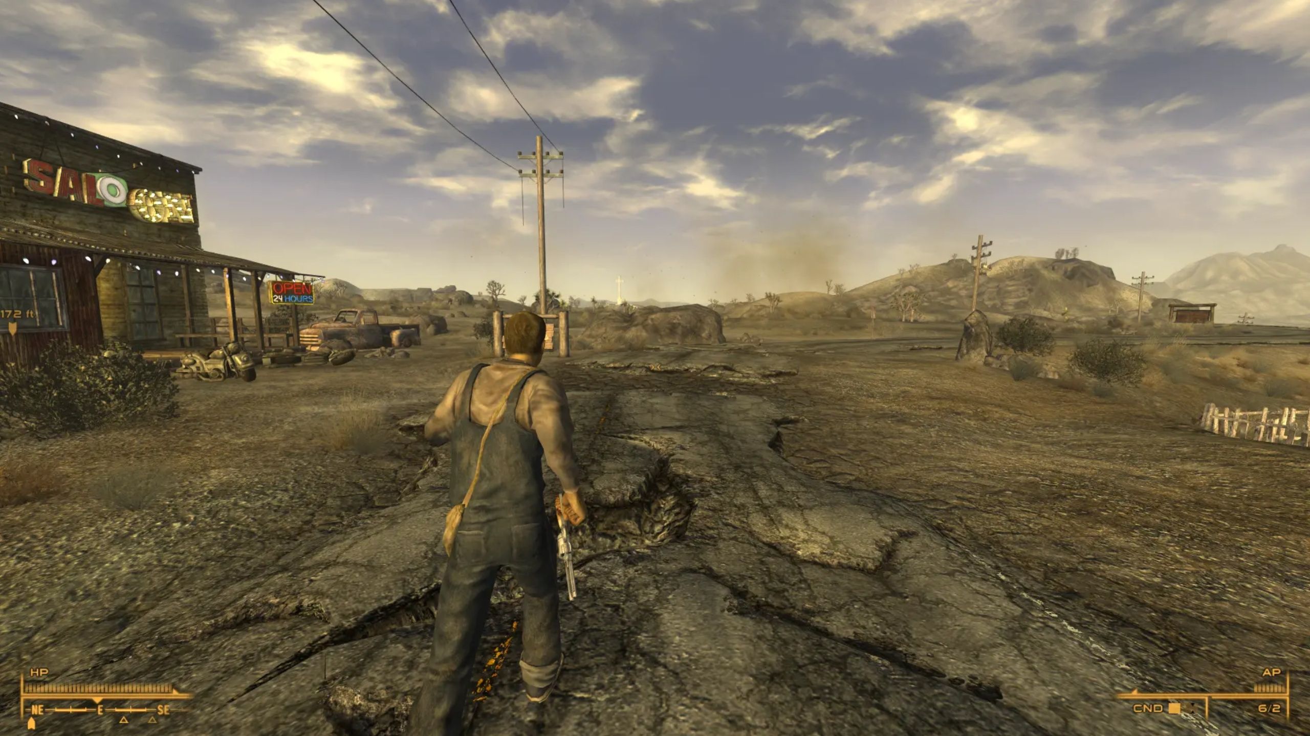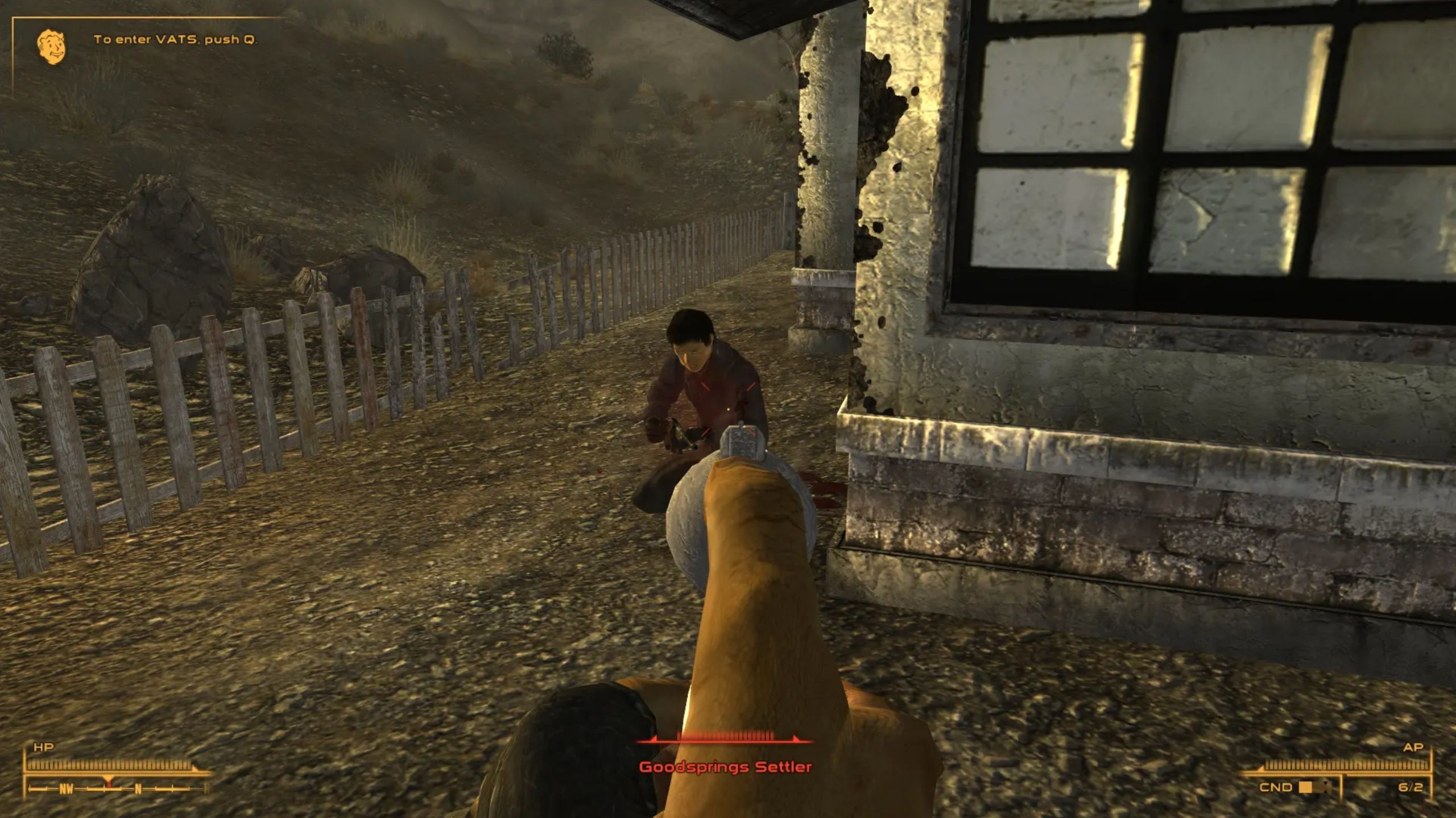 В New Vegas можно переключаться между видом от первого и третьего лица. Многие игроки предпочитают вид от первого лица, потому что так легче целиться, но взгляд вниз иногда может испортить ощущение погружения в игру. К счастью, мод, созданный LogicDragon, добавляет видимое тело и тень, когда вы находитесь в режиме от первого лица. Это небольшое изменение — возможность видеть торс и ноги вашего персонажа — значительно улучшает погружение.