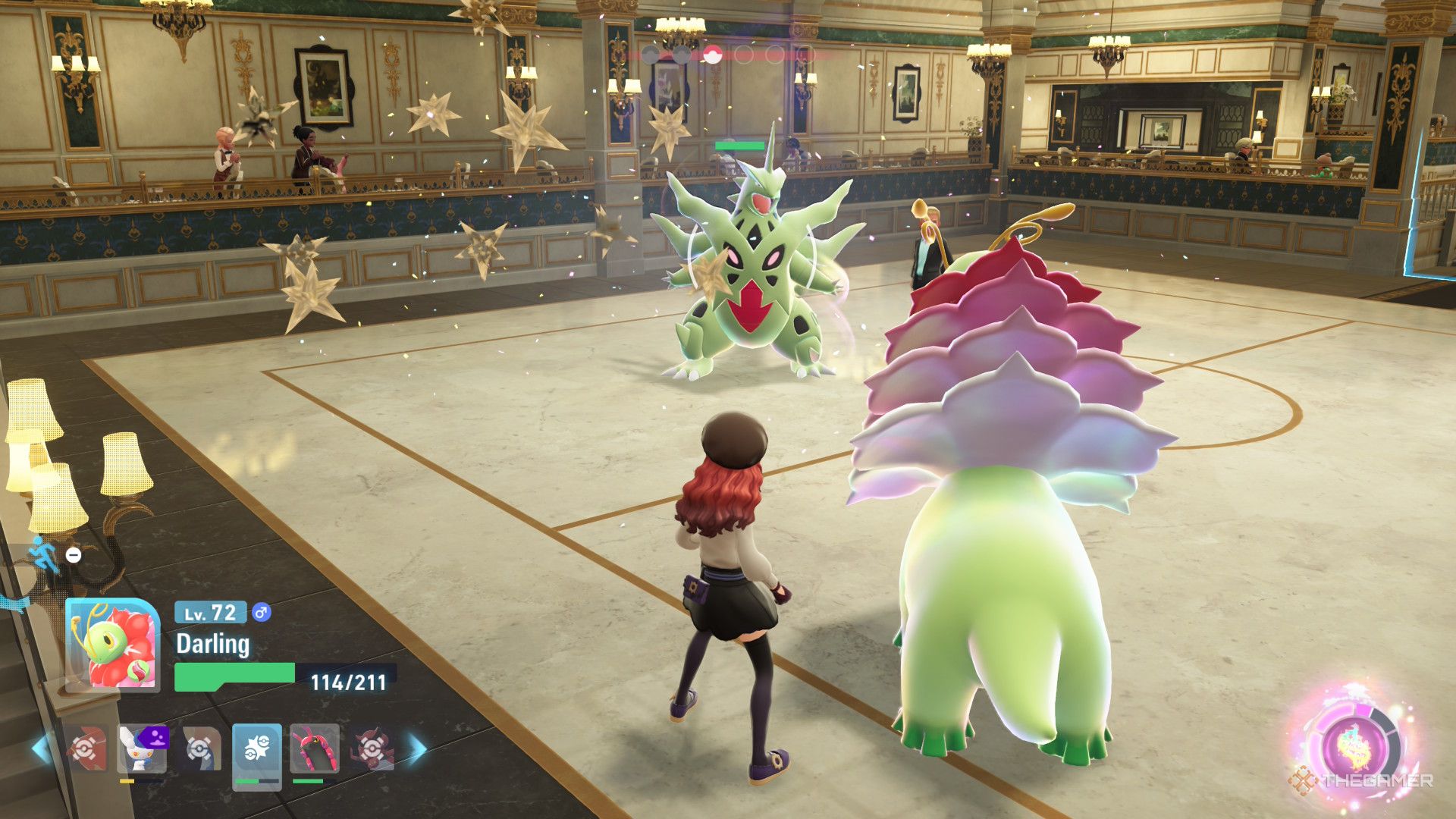 - Имейте в виду, что вы можете использовать предметы один раз за ход во время этого сражения. Используйте Антидоты или Lumiose Galettes по мере необходимости.