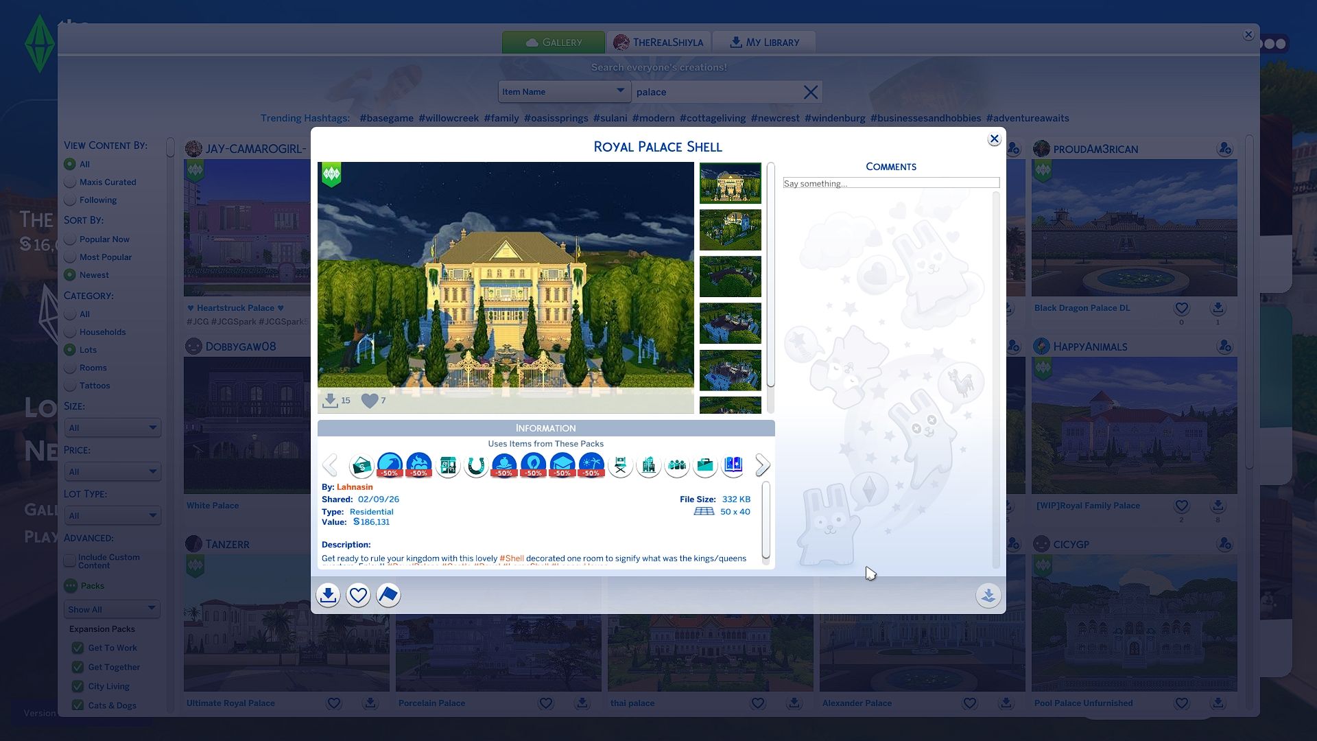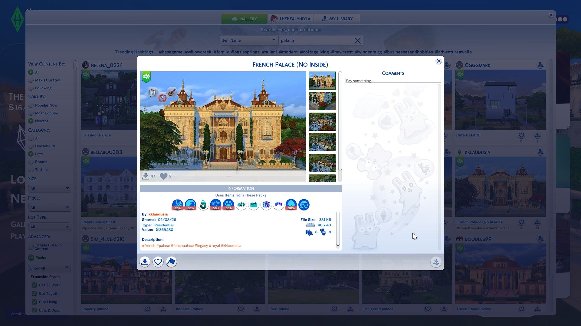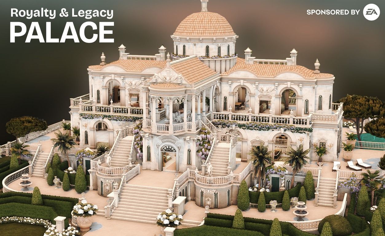 Этот дизайн дворца действительно исключителен и не требует никакого дополнительного контента для постройки. Используя только предметы из дополнения Royalty & Legacy, вы можете сразу же создать потрясающий и роскошный дом для своих Sims.