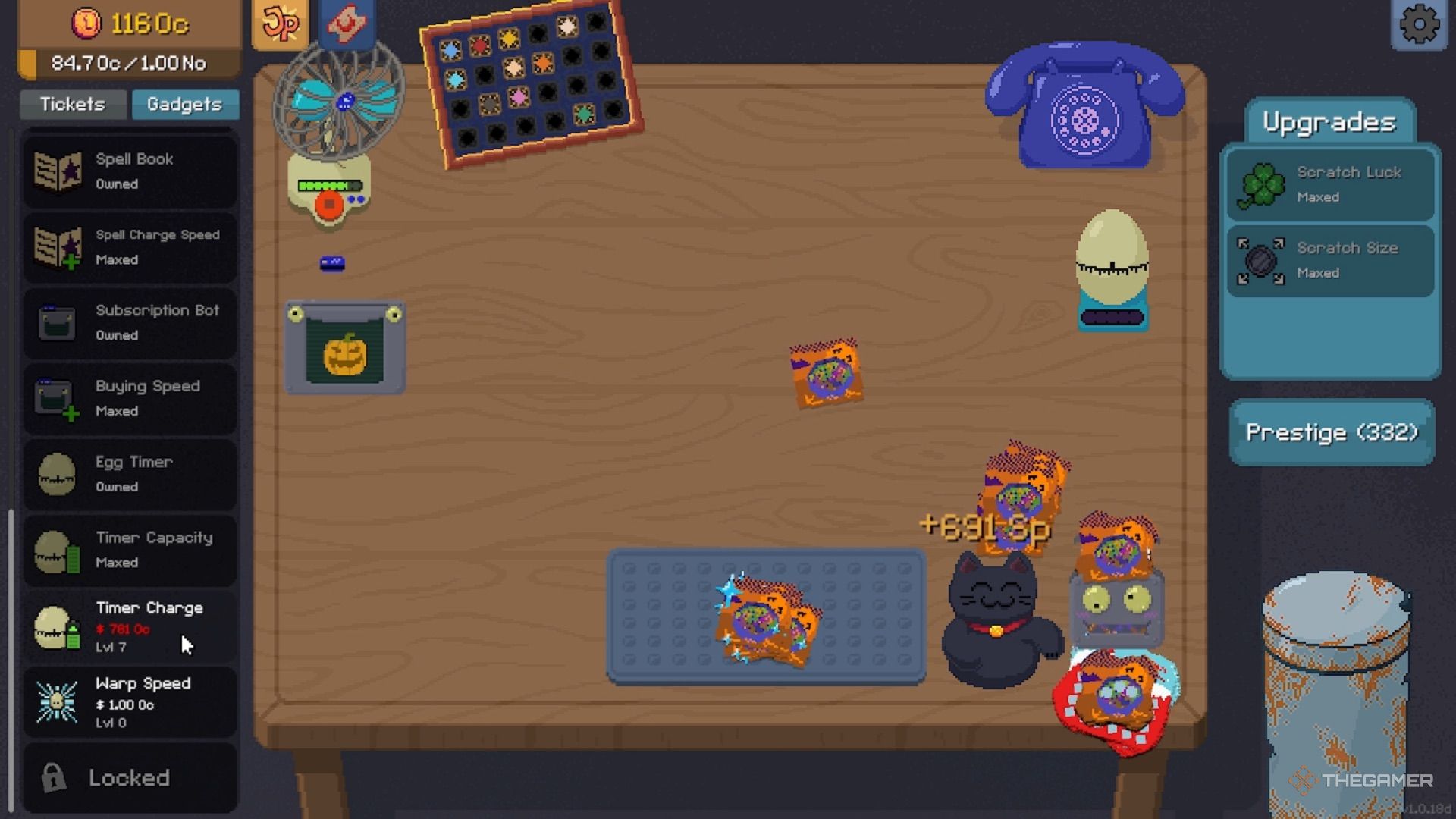 Выигрыш крупных призов в основном зависит от удачи, но вы можете увеличить свои шансы, приобретя улучшение Scratch Luck. Как только вы накопите значительное количество JP (очков джекпота), вы можете нажать и удерживать кнопку Prestige, чтобы завершить текущую игру и получить доступ к экрану Prestige.