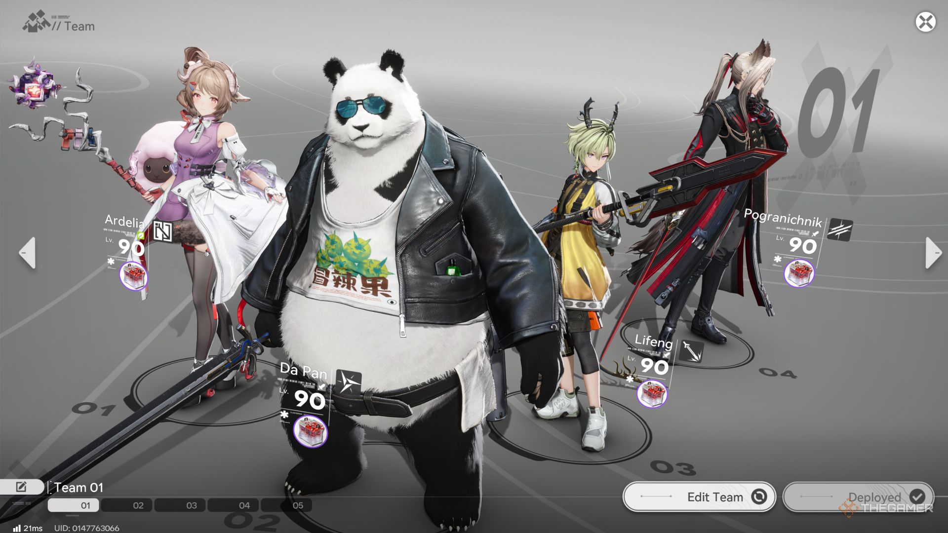 Да Пану нужна сильная команда, ориентированная на Физический урон, чтобы быть эффективным, и он получает огромную пользу от увеличения Уязвимости врагов для повышения его урона. В идеальной команде Лифенг использовался бы для постоянного применения Уязвимости, что является ключевым для активации как Да Пана, так и Пограничника. Арделия добавляет дополнительную поддержку, накладывая Поражение.