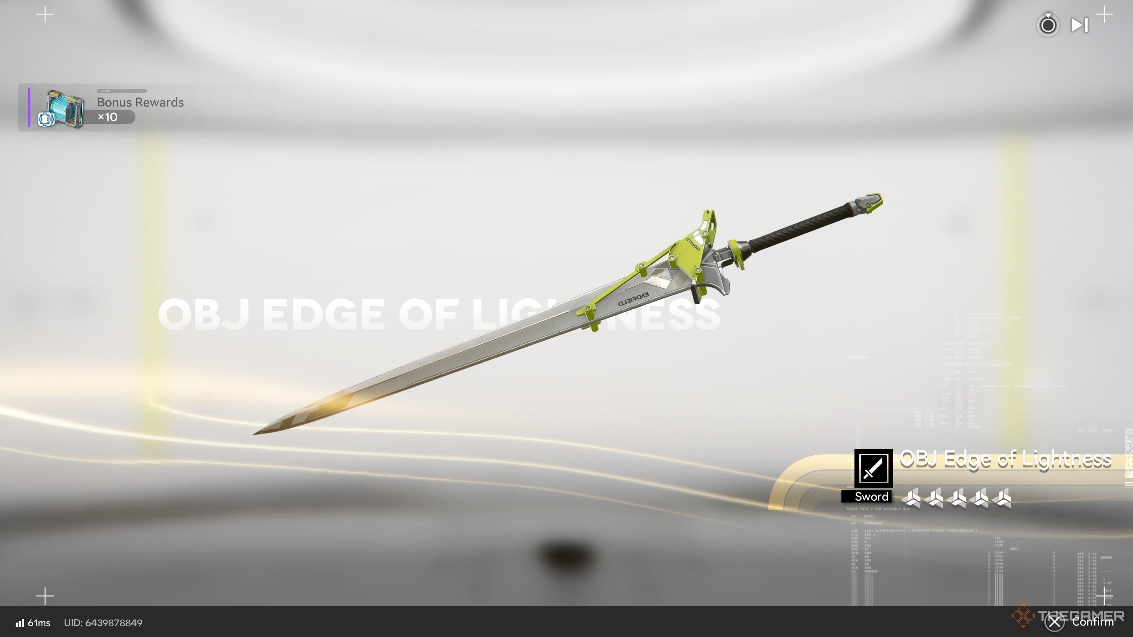 | OBJ Edge of Lightness Five-Star Sword |