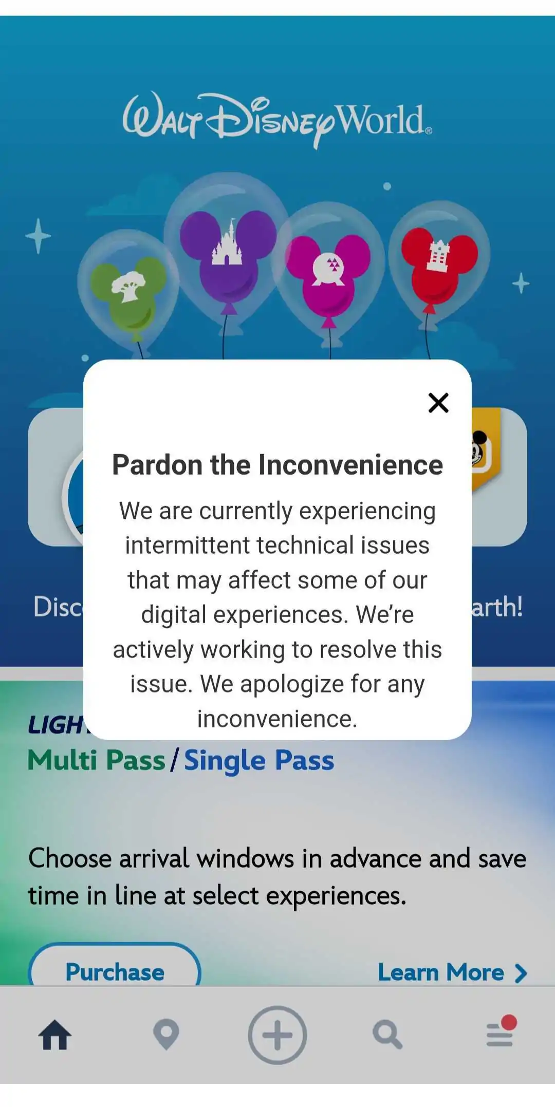 Примерно к раннему полудню части приложения начали работать снова, поскольку Amazon Web Services (AWS) медленно восстанавливались. Но в приложении Disney World в течение нескольких часов продолжала отображаться предупреждающая надпись о том, что некоторые функции могут быть недоступны или работать медленно.