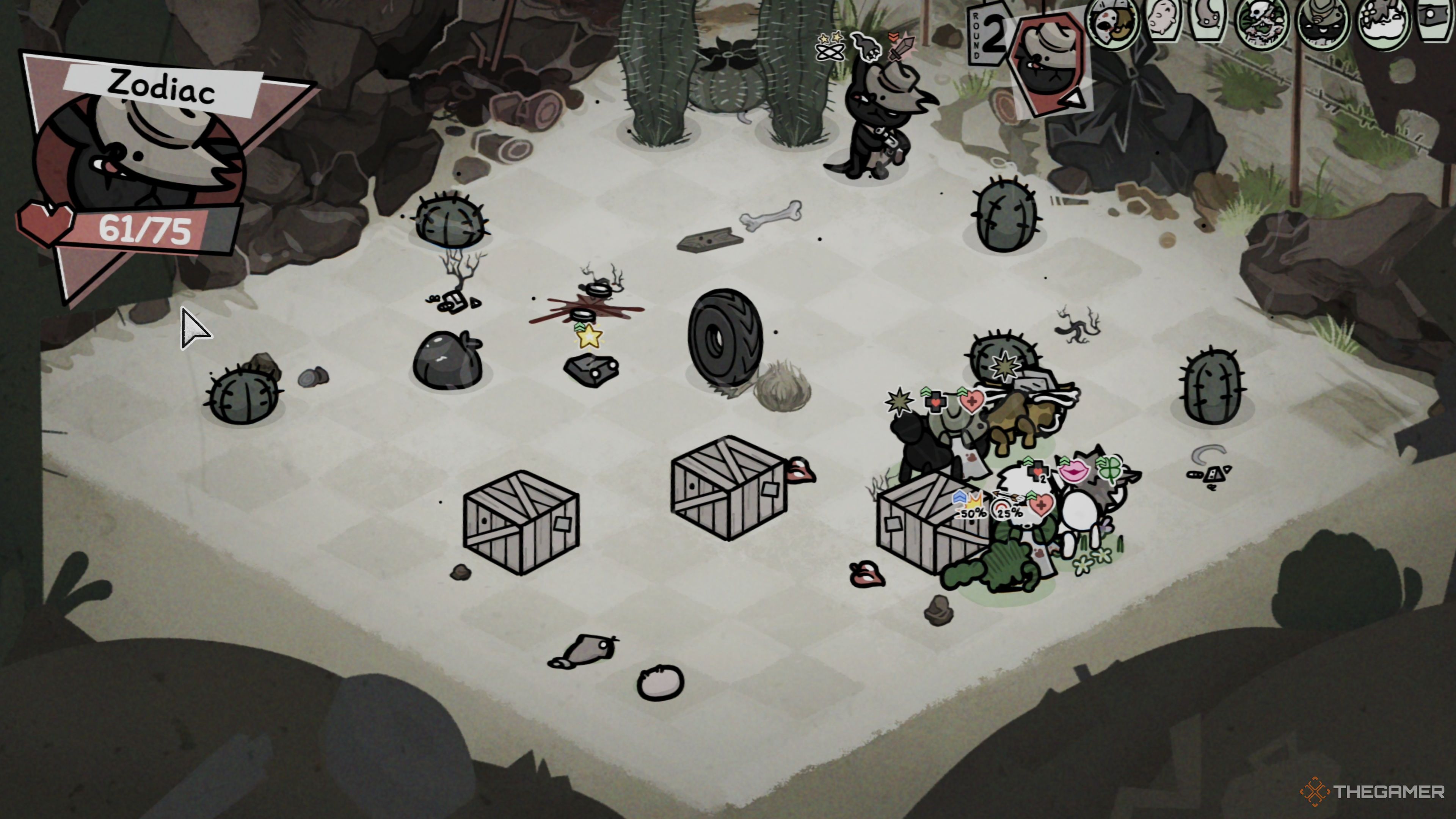 Посмотрите на карту – вы заметите множество высоких препятствий, таких как шины, коробки и кактусы. Используйте их, чтобы блокировать выстрелы Zodiac и заставить его стрелять по окружению, что позволит ему потратить боеприпасы. Это поможет вам приблизиться, и в конечном итоге ему придётся перезарядиться. Когда вы подойдёте достаточно близко, дайте вашему Hunter атаковать его несколько раз, а затем отправьте вашего Tank. Tank может выдержать удар и подойти вплотную к Zodiac, чтобы нанести мощный удар!