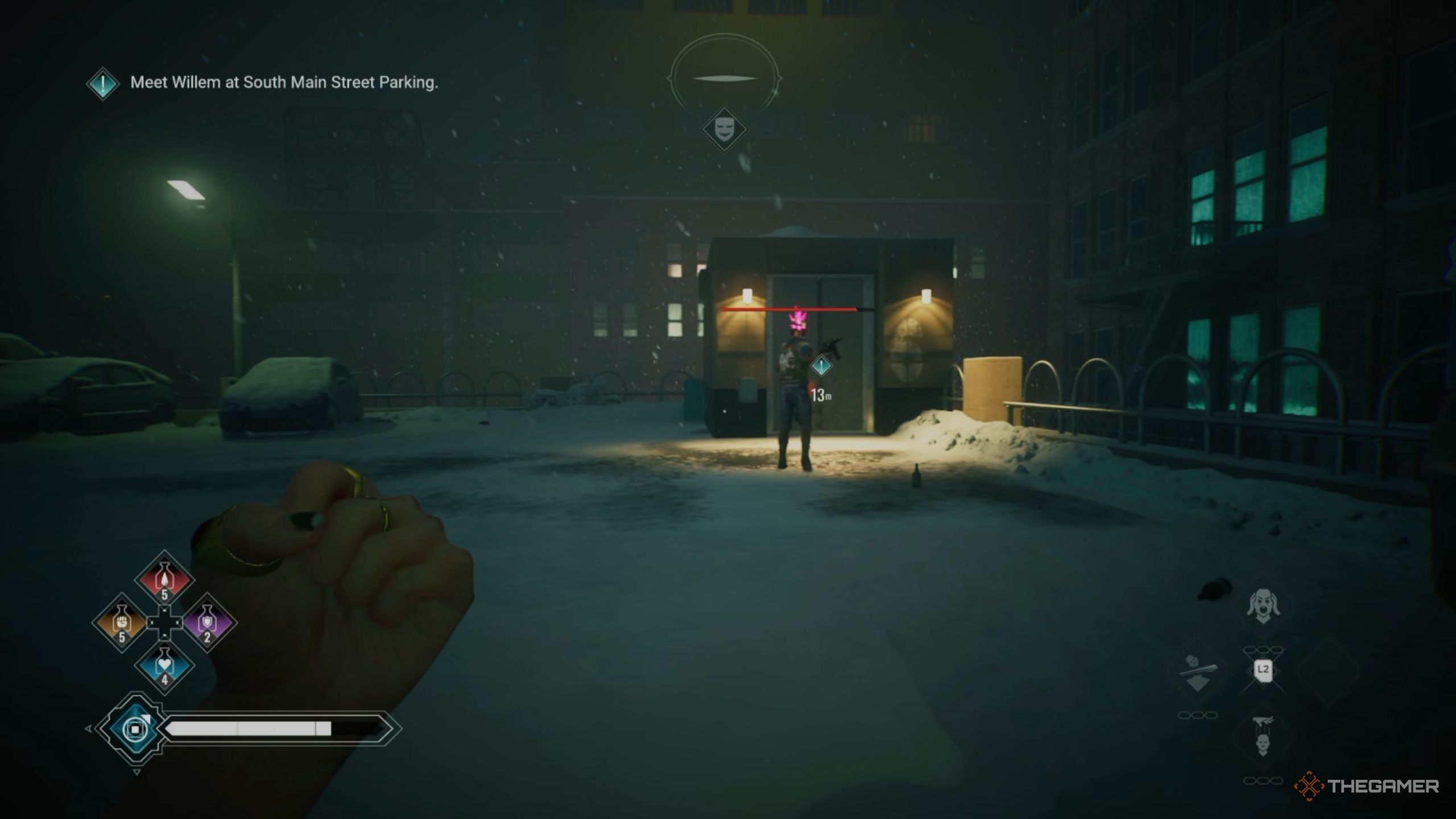 Парковка имеет два этажа, заполненных врагами. Когда вы достигнете верхнего этажа, вы можете использовать свою способность Possession, чтобы взять под контроль мощного врага и обернуть его против его товарищей по команде. Это поможет вам уничтожить многих врагов сразу, хотя одержимый враг будет продолжать сражаться, пока не будет уничтожен.