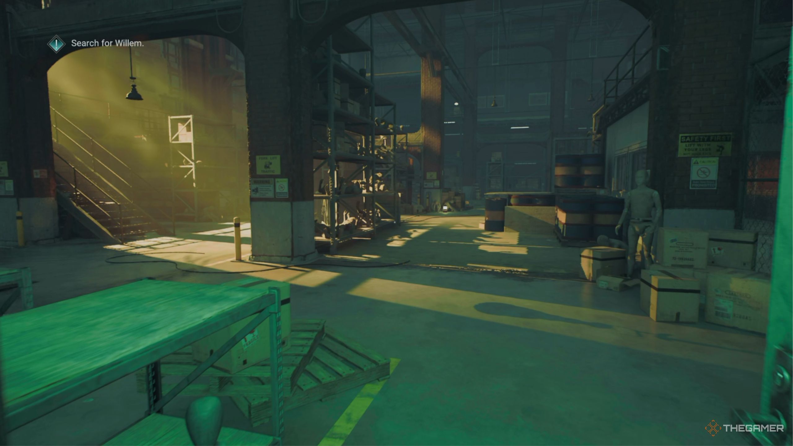 Как только вы окажетесь внутри фабрики, следуйте по главной дороге, пока не достигнете большого открытого пространства. Перейдите на дальнюю сторону этой области, напротив того места, откуда вы вошли, и дважды поднимитесь по лестнице на второй этаж. Это приведёт вас к Виллему, который создаст иллюзию. Однако, если вы ответите ‘Is everything all right?’, он отреагирует положительно.