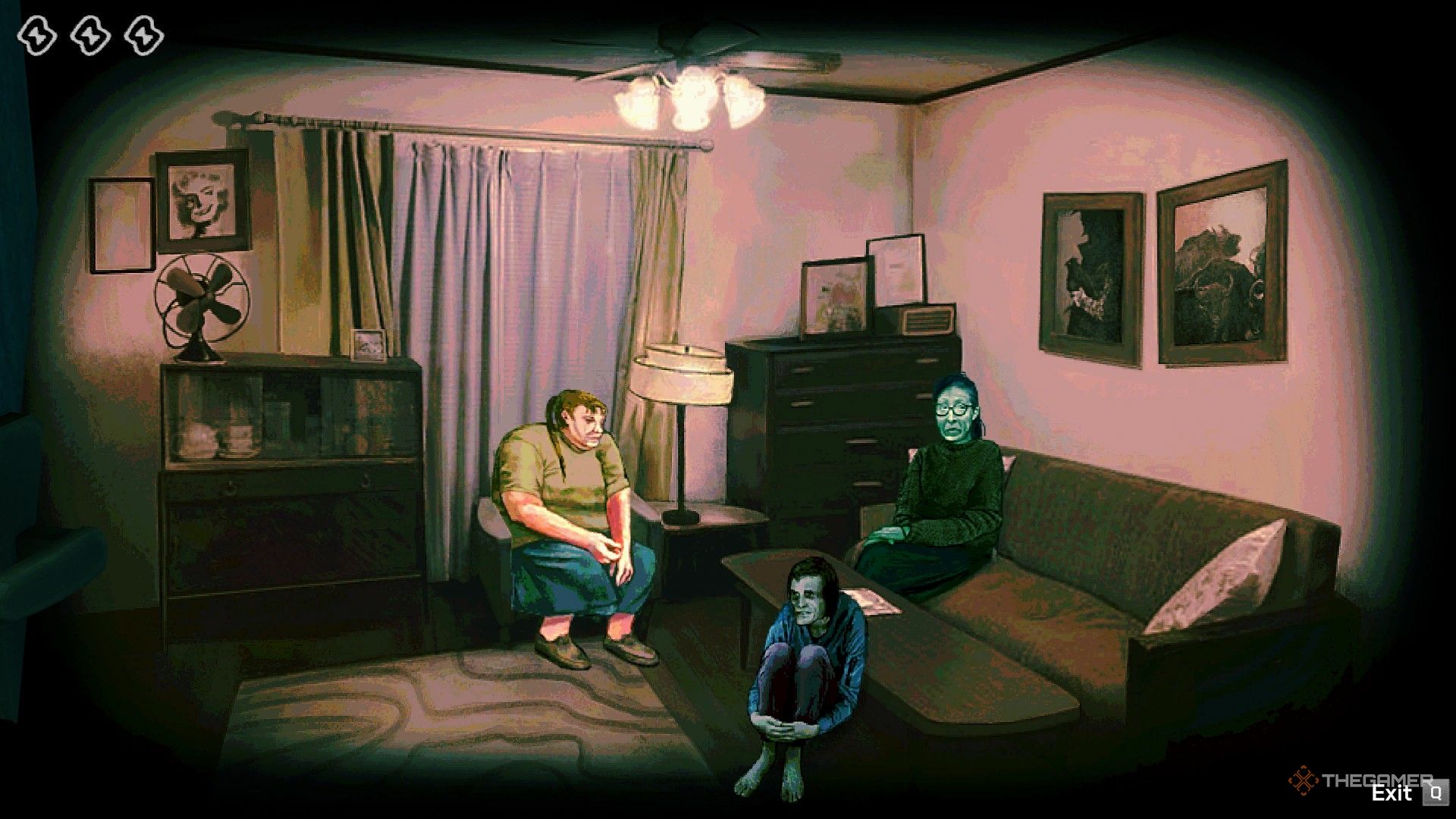 Я быстро играл в игру, делал заметки о персонажах и просто пытался выжить, когда позволил Женщине в очках остаться со мной. Я был шокирован, обнаружив, что её нет там, где она обычно сидела – на диване – а вместо этого она была в кресле. Это было невероятно!