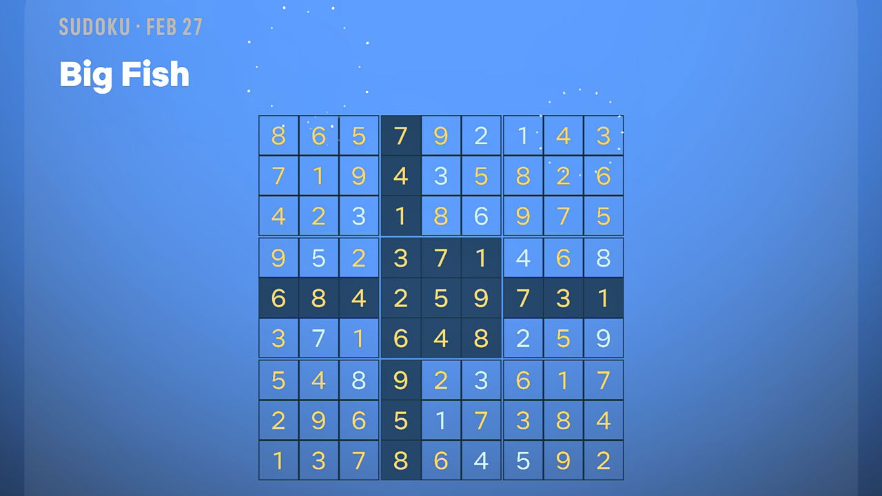 У нас есть три головоломки Судоку для вас сегодня: ‘Stepping Stones’ – легкая, ‘Big Fish’ – средняя, а ‘Sunshine’ – сложная. Помните обычные правила: каждая строка, столбец и блок 3×3 должны содержать числа от 1 до 9, без повторений. Если вы застряли, вы можете проверить изображения решений в галерее, чтобы увидеть, где могли допустить ошибку.