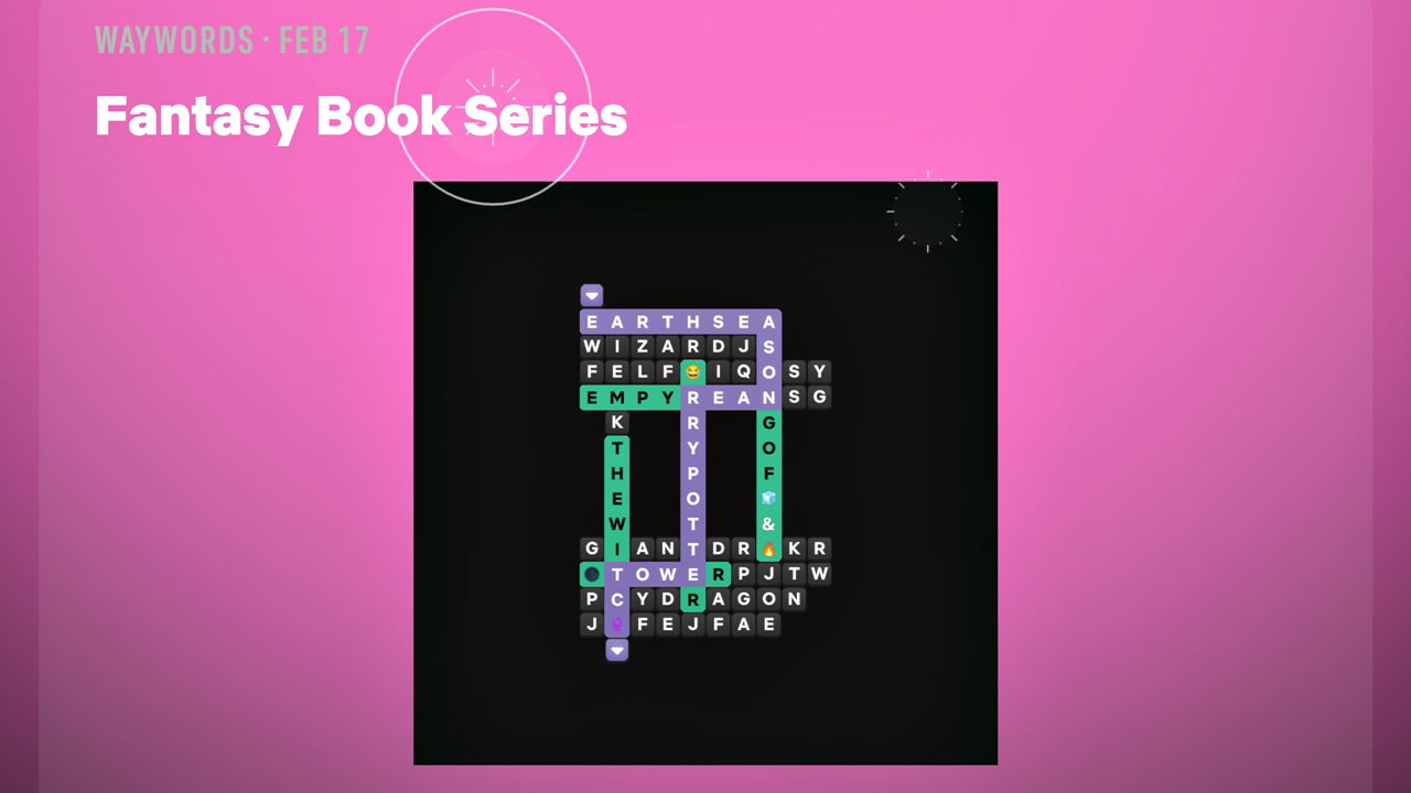 Сегодняшняя головоломка Waywords содержит подсказку ‘Серия фэнтезийных книг’. Найдите скрытый путь по сетке, чтобы раскрыть названия популярных фэнтезийных серий!