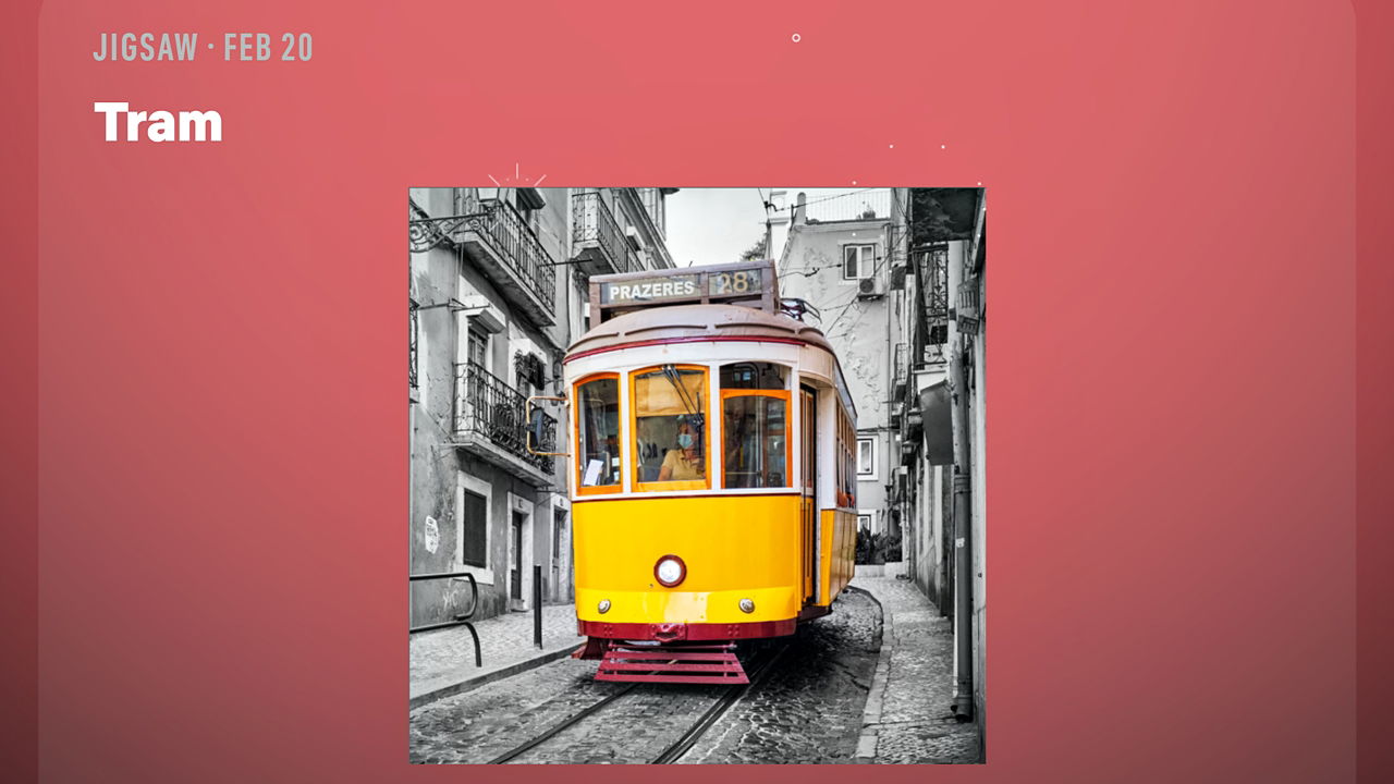 Эта недельная головоломка-пазл продолжает тему общественного транспорта, представляя красивое изображение знаменитого лиссабонского Трамвая №28. Этот винтажный желто-белый трамвай курсирует по историческим мощеным улицам столицы Португалии с 1930-х годов, и вам предстоит собрать выборочно раскрашенную фотографию этого трамвая.