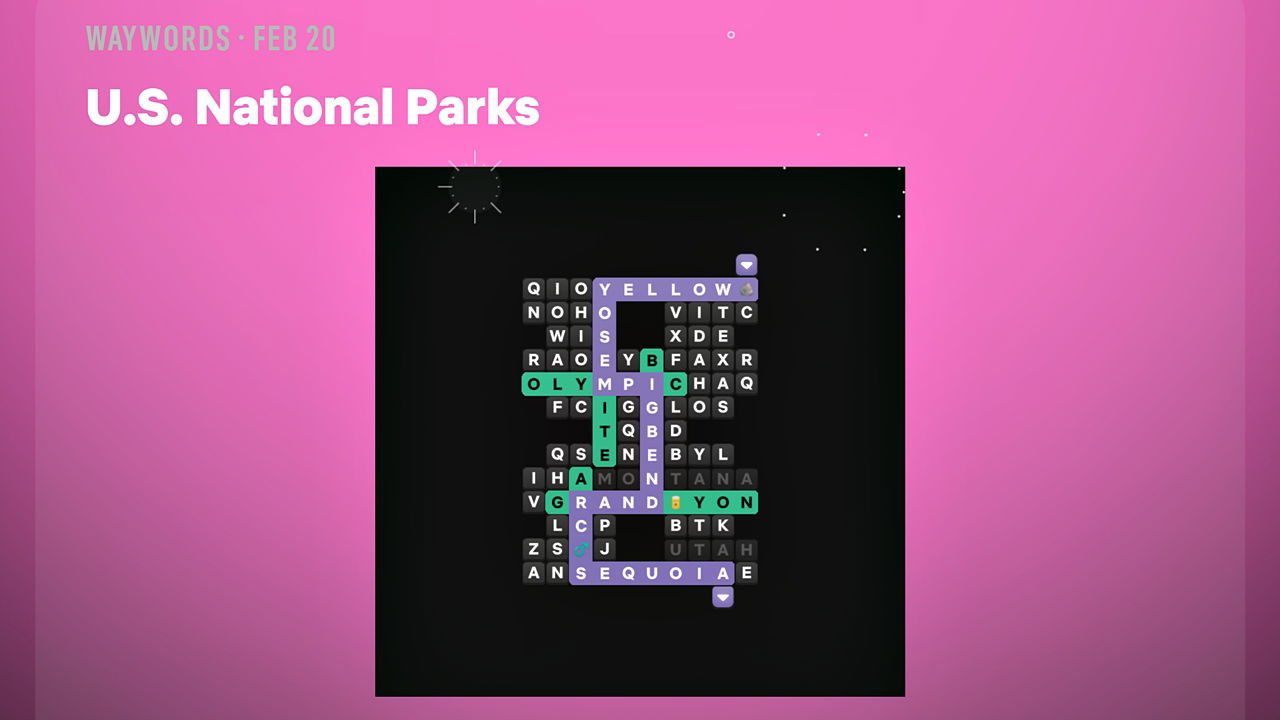 Сегодняшняя головоломка Waywords имеет тему: Национальные парки США. Найдите скрытый путь в сетке, чтобы раскрыть названия этих знаменитых американских парков!