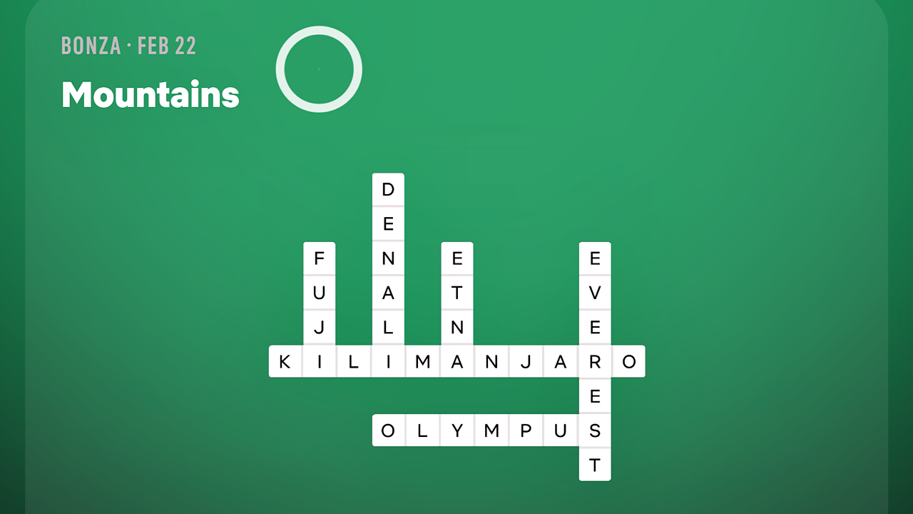 Сегодняшняя подсказка в Bonza – «Горы», и она приведет вас к некоторым из самых известных вершин мира. Соедините плитки, чтобы написать названия этих хорошо известных вершин со всего мира.