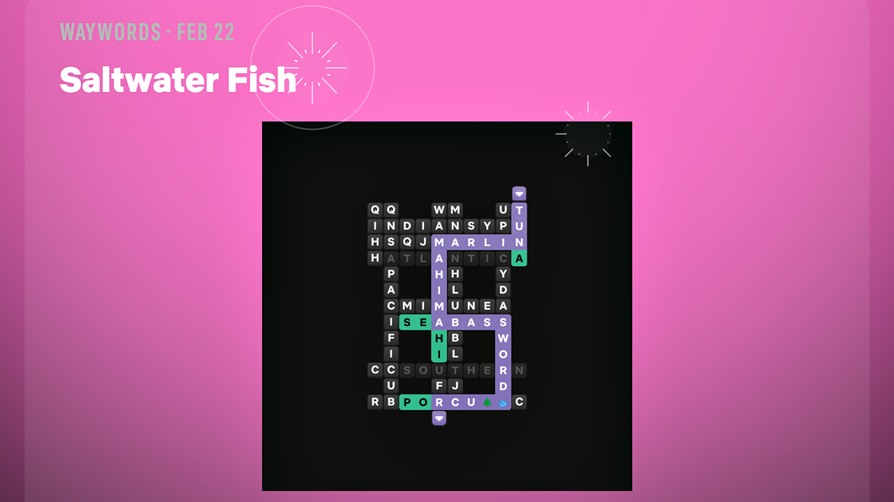 Я так рад сегодняшнему Waywords! Подсказка — ‘Saltwater Fish’, и нам предстоит найти путь через сетку головоломки, который будет составлять названия различных видов океанских рыб. Это как скрытый поиск слов, но с интересной изюминкой!