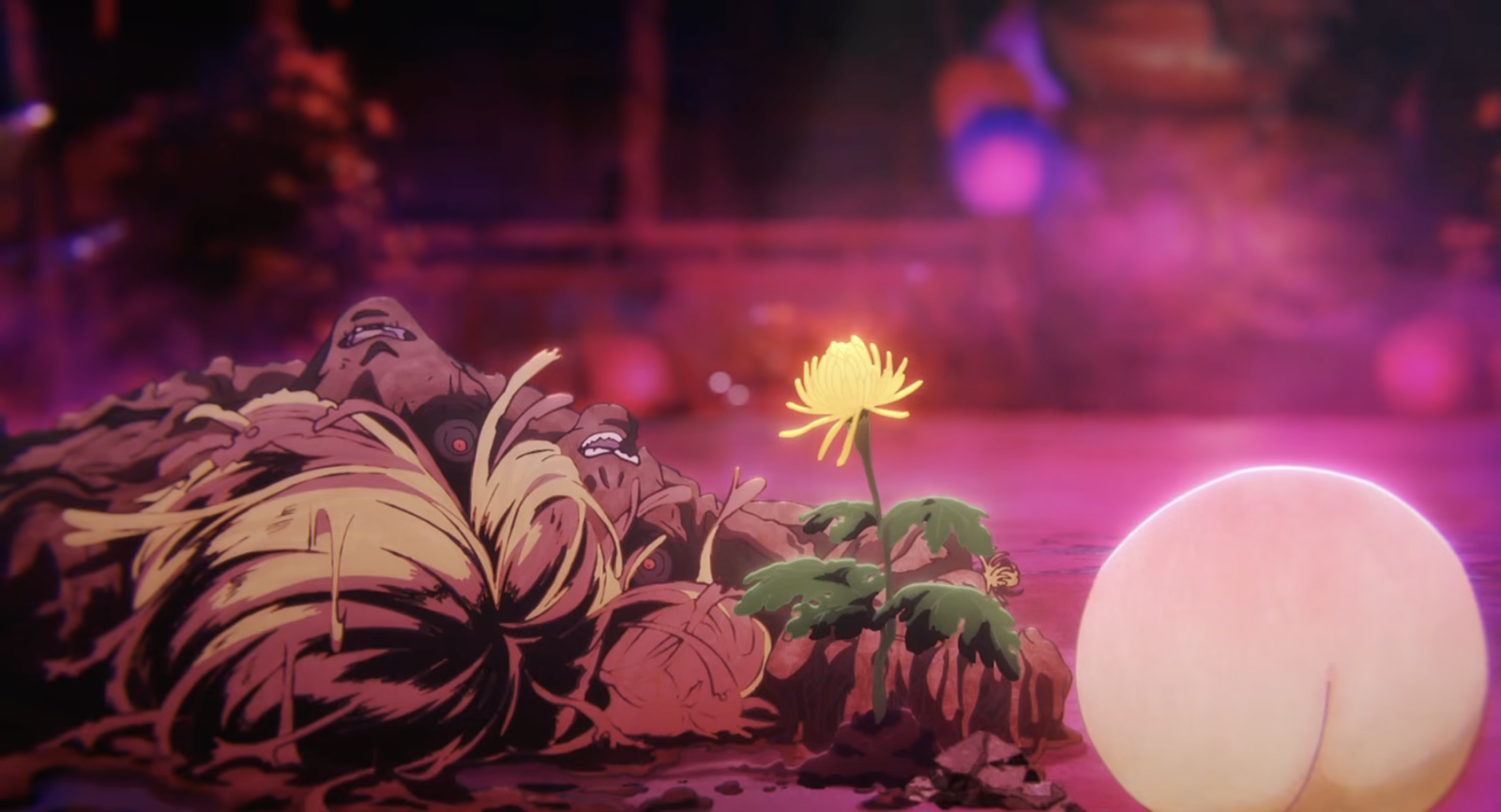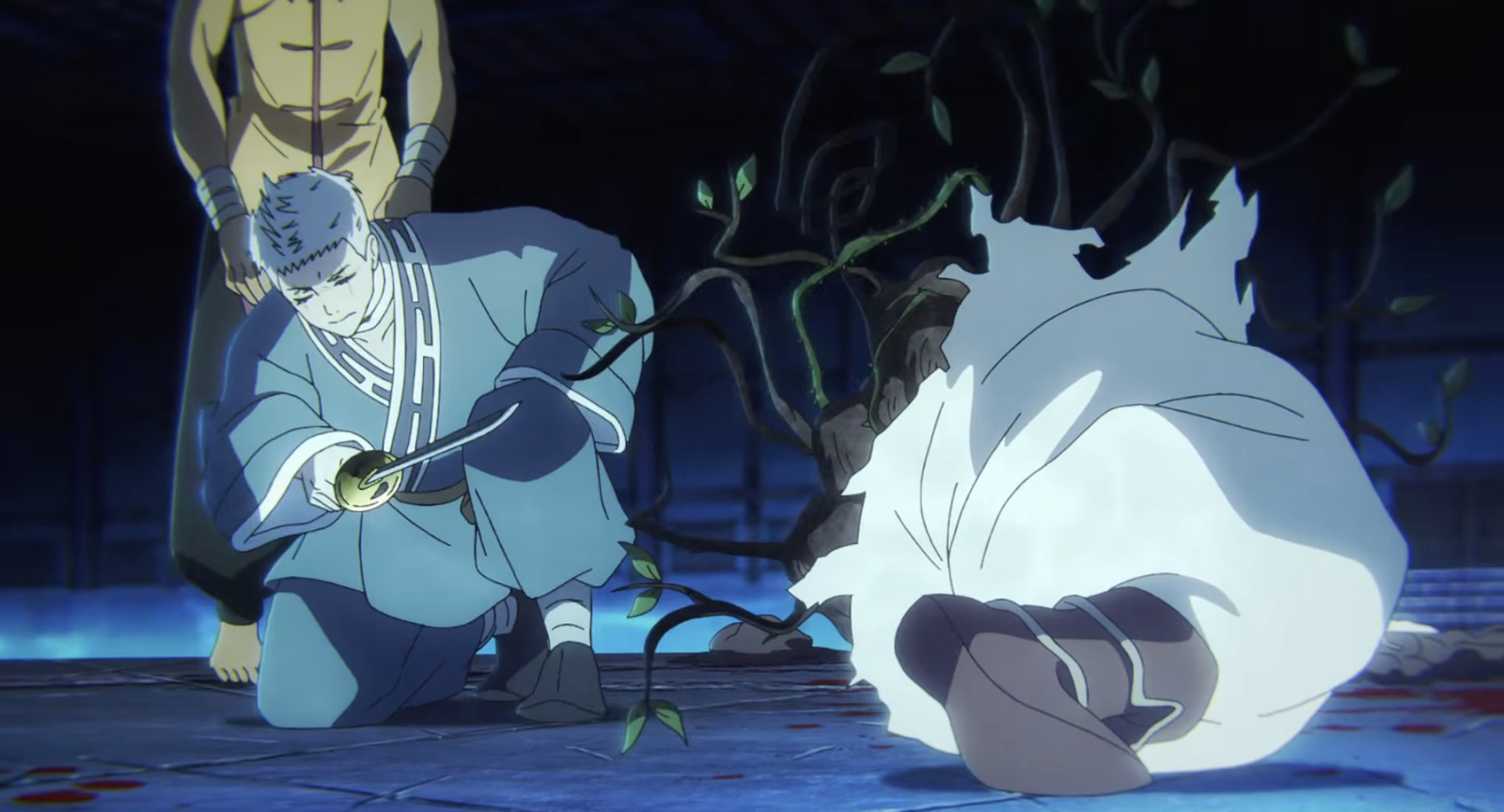 Чобеи раскрывает скрытую способность – особую энергию, которую он тайно накапливал. Он использует её, чтобы временно остановить невероятное исцеление Цзю Фа, давая им время уничтожить ядро существа. После битвы происходит нечто неожиданное: Гантетсусай, безжалостный преступник, проявляет удивительное сострадание. Он кладет цветок персика рядом с цветком Цзю Фа, позволяя двум павшим воинам покоиться вместе мирно.