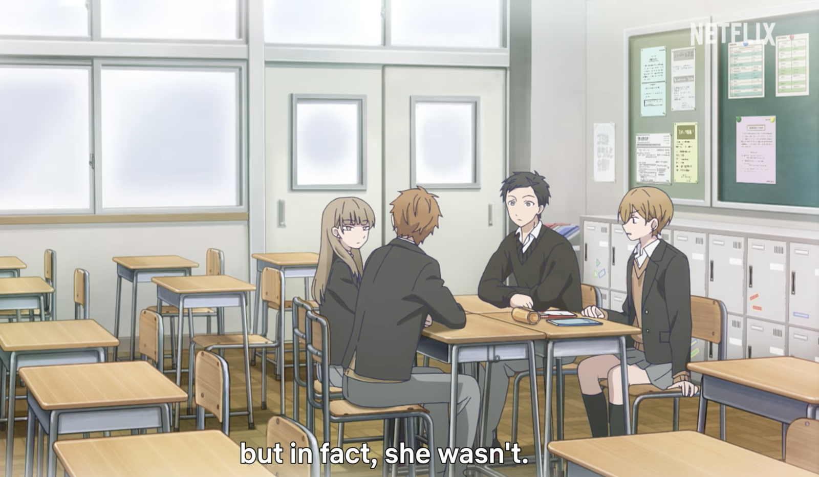 Сцена переключается на общественный центр, где атмосфера становится спокойной и сосредоточенной. Йота и Хикава удивительным образом вместе, тихо учатся – это кажется уютным, повседневным моментом. Когда Мики прибывает, её реакция бесценна. Она совершенно удивлена увидеть обычно отстранённую Хикаву, делящую пространство и учащуюся с Йотой, но она рада этому. История отлично справляется с тем, чтобы даже небольшие изменения в их отношениях казались большими шагами вперёд для персонажей.