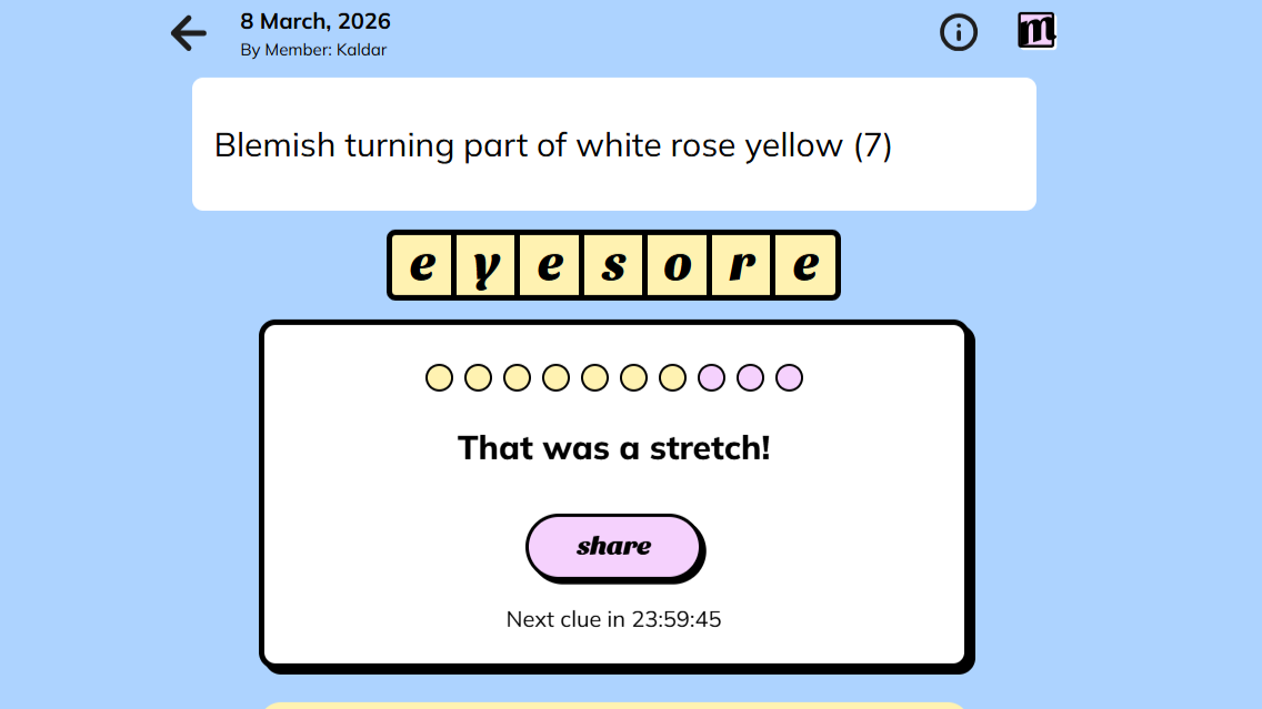 Застряли на слове или подсказке? Используйте подсказки, чтобы решить её. Если вам просто нужно быстро найти ответ, вы можете найти решение для головоломки Minute Cryptic от 8 марта 2026 года ниже. Когда закончите с сегодняшней головоломкой, ознакомьтесь с нашим списком 10 лучших ежедневных головоломок, чтобы развлечь вас до следующей доступной.