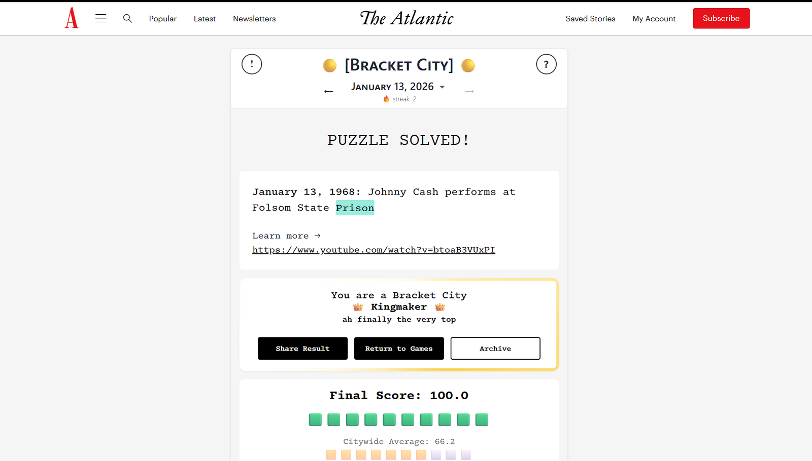 The Atlantic Bracket City Solution для 13 января 2026 года