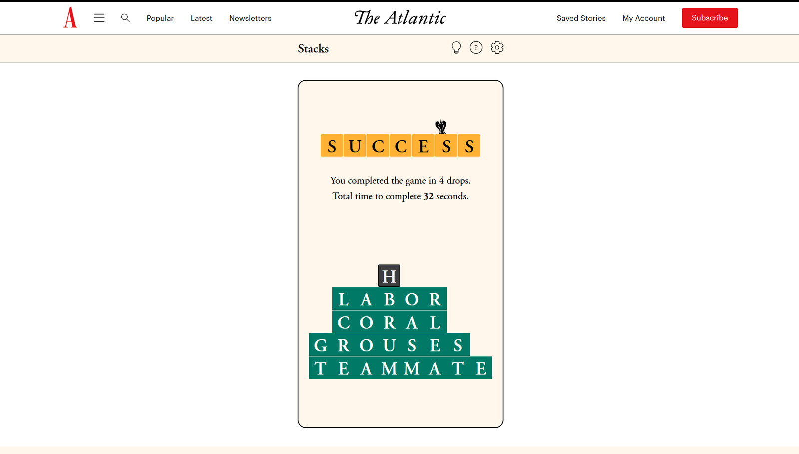 The Atlantic Stacks Solution для 13 января 2026 года