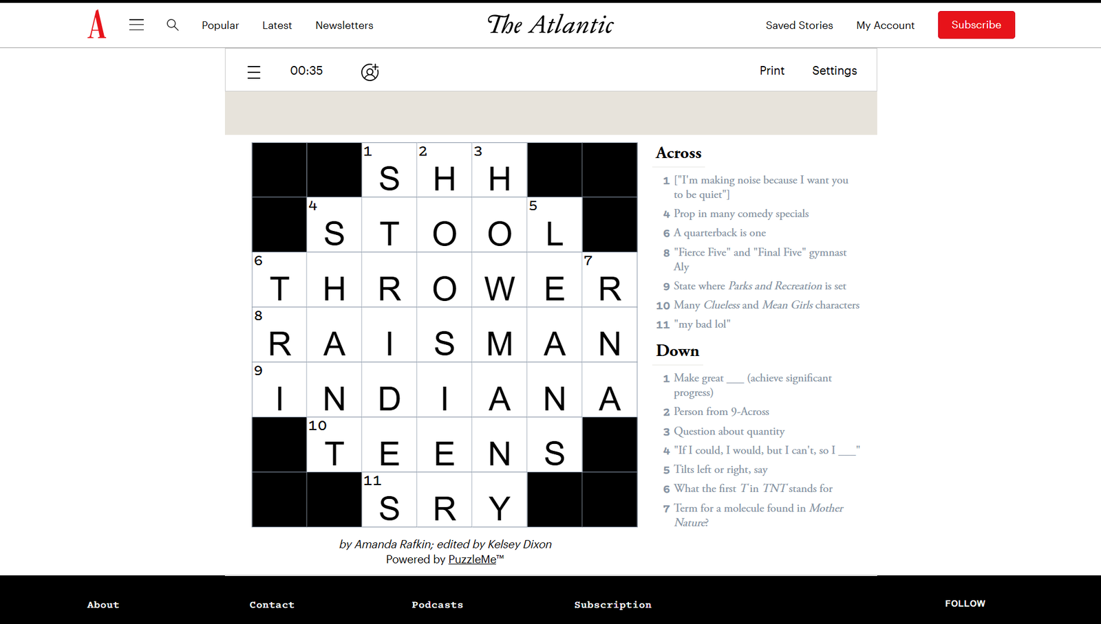 Решение кроссворда The Atlantic за 21 января 2026 года.