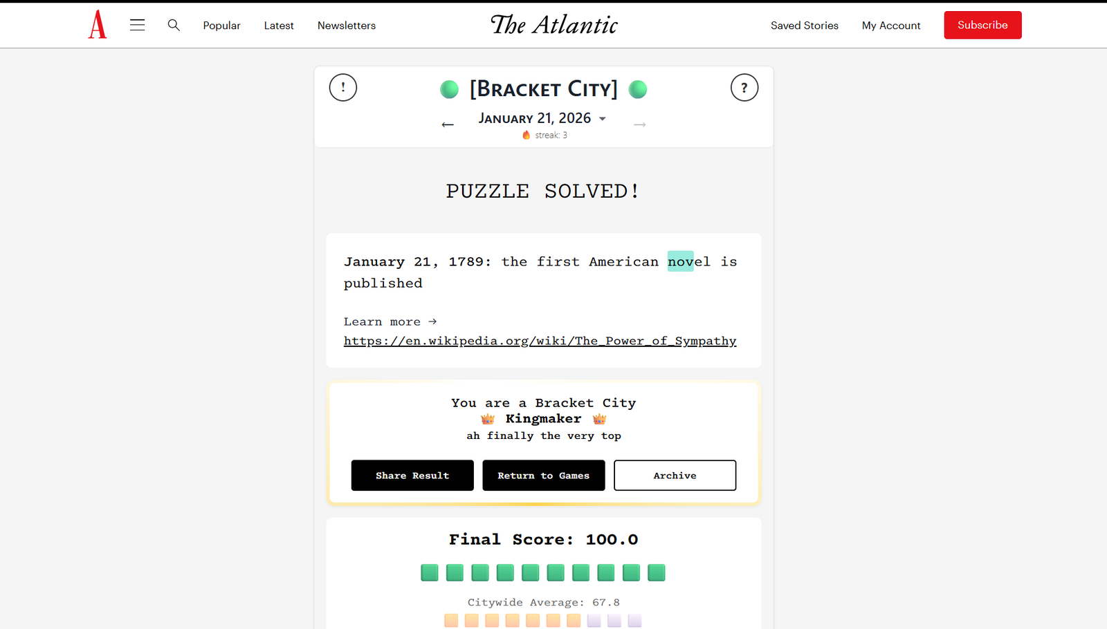 The Atlantic Bracket City Solution для 21 января 2026 года