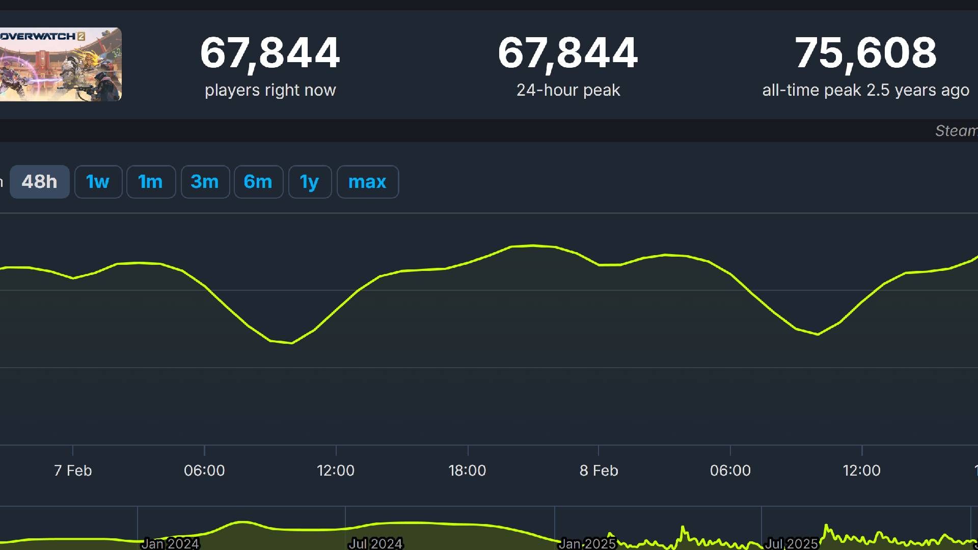 Overwatch 2 достигла пика в 75 608 одновременных игроков в Steam более двух лет назад. Хотя эта цифра может показаться не впечатляющей для крупной, продолжающейся игры, она не рассказывает всей истории. Overwatch 2 стабильно показывала хорошие результаты на Battle.net и домашних консолях. По сути, Steam не был надежным показателем общей популярности игры.