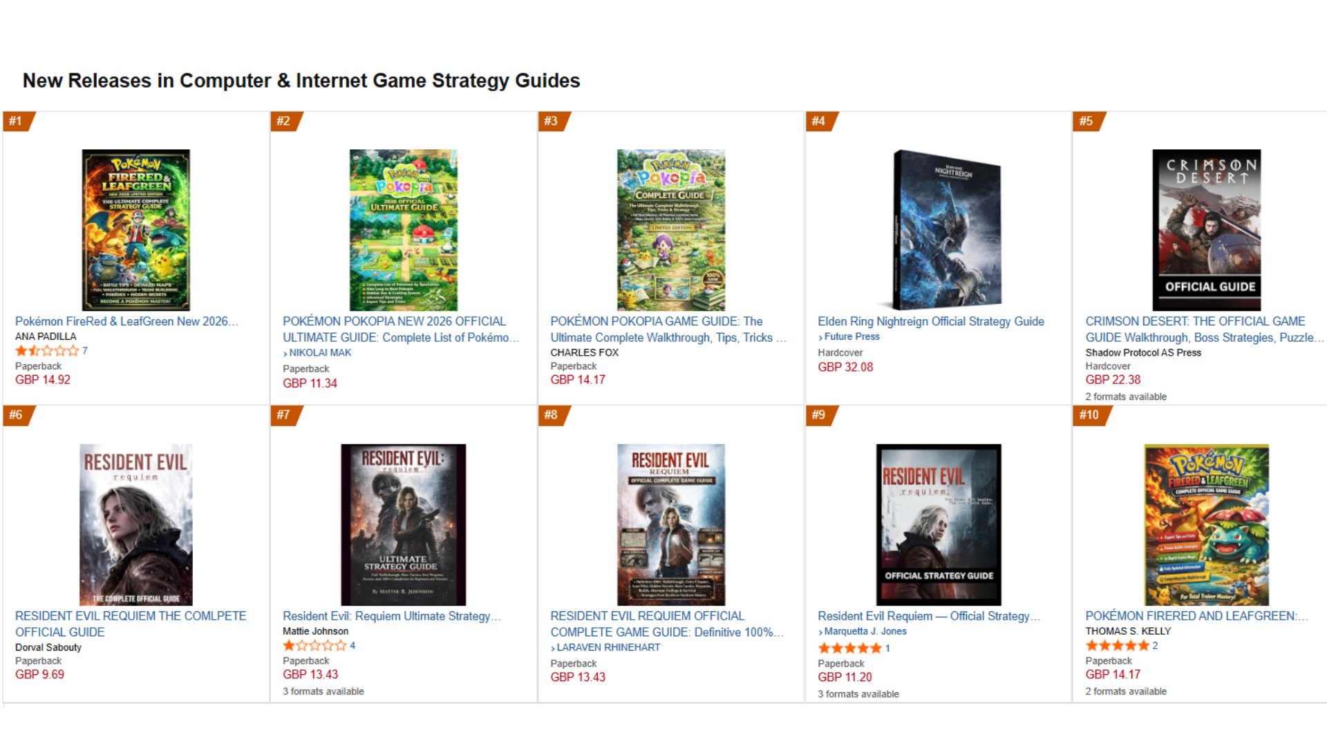 В настоящее время руководства по Pokémon являются самыми популярными на Amazon, но волна плохо написанных, сгенерированных ИИ руководств для многих других игр также возглавляет чарты. Эти низкокачественные руководства охватывают все, от популярных игр, таких как Resident Evil, Animal Crossing и Fallout, до даже игр, которые еще не были выпущены, таких как Crimson Desert.