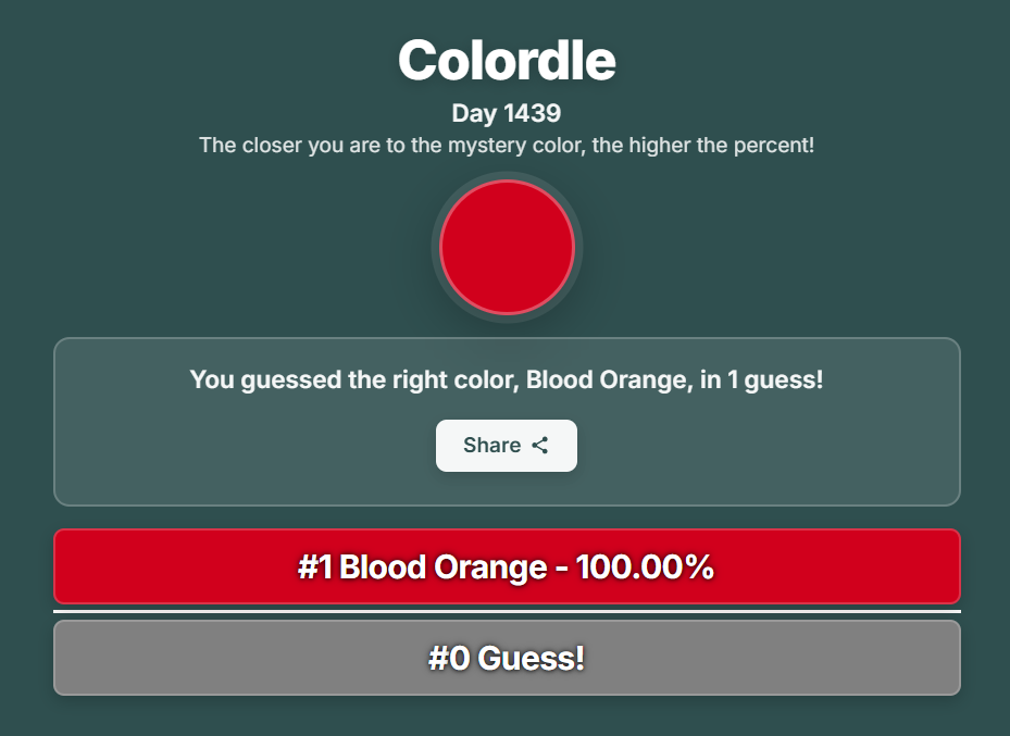 Таинственный цвет для сегодняшнего головоломки Colordle:
