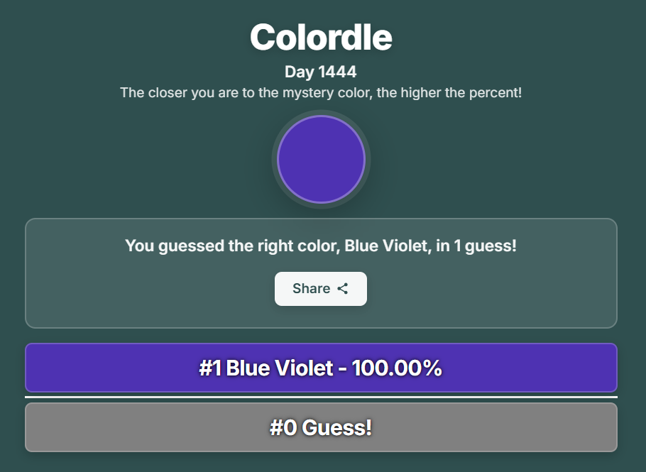 Загадочный цвет для сегодняшнего головоломки Colordle: