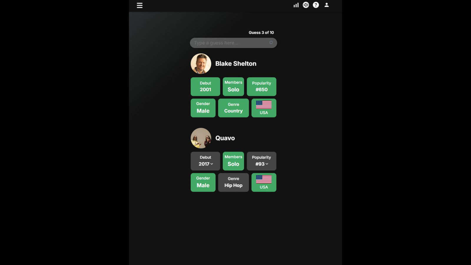 Вы мгновенно выиграете игру, как только все категории станут зелёными, но это произойдёт только в том случае, если вы правильно определите исполнителя в Spotle.