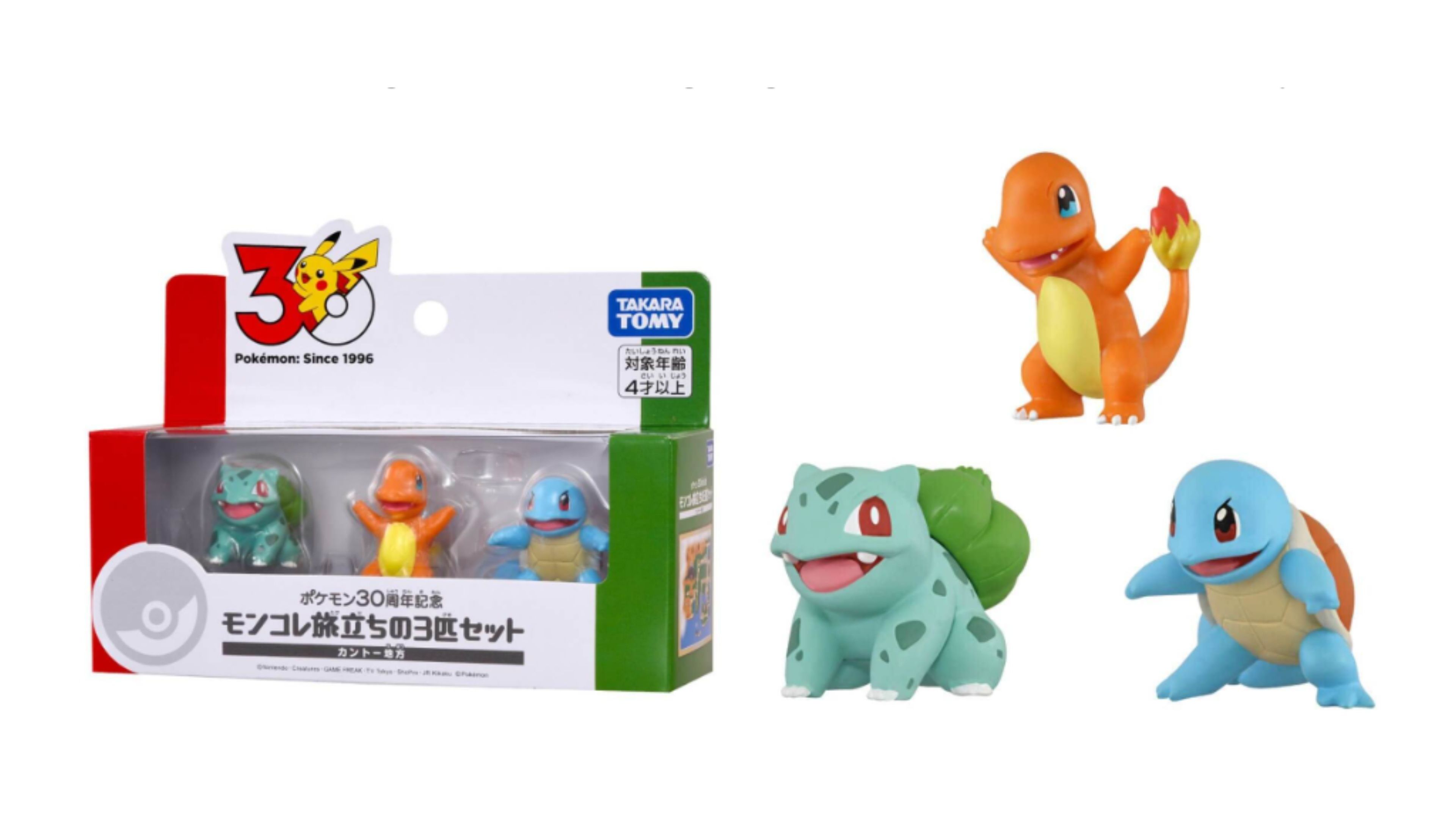 Пикачу получит новую мягкую игрушку в рамках более масштабного празднования 30-летия франшизы Pokémon. Takara Tomy, компания, производящая игрушки Pokémon, также объявила о линейке фигурок с партнерами Pokémon. Эти фигурки будут продаваться наборами по три, при этом каждое поколение Pokémon будет представлено во всех девяти поколениях.