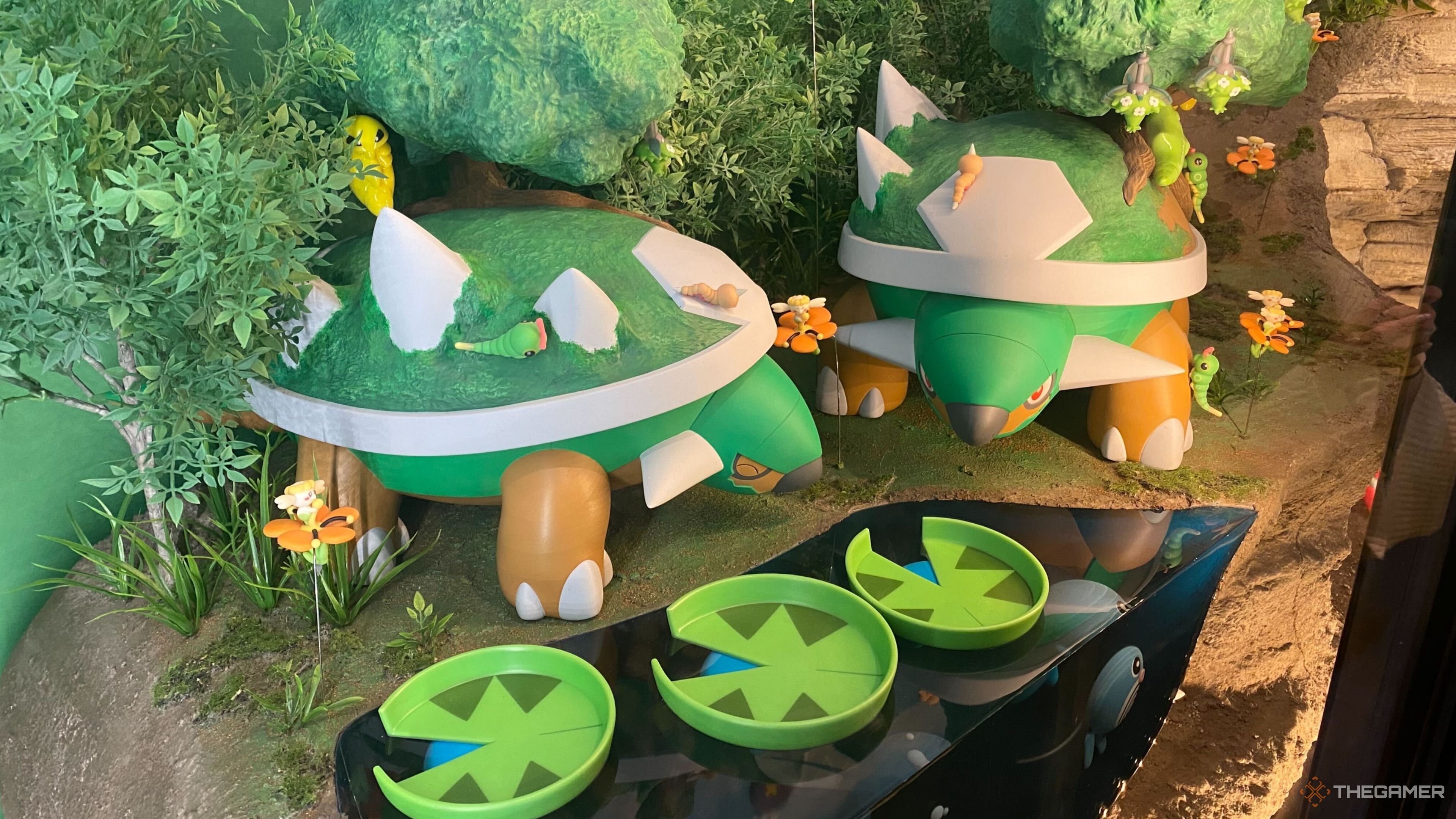 Прямо перед магазином находится потрясающая экспозиция Pokemon. На ней изображены тренеры, едущие на Charizard и Dragonite, большой Torterra, украшенный миниатюрными Pokemon, и Pokemon, такие как Onix и Drillbur, которые, кажется, копают под землю. Я потратил около 20 минут, разглядывая её, и уверен, что всё ещё не заметил их всех!