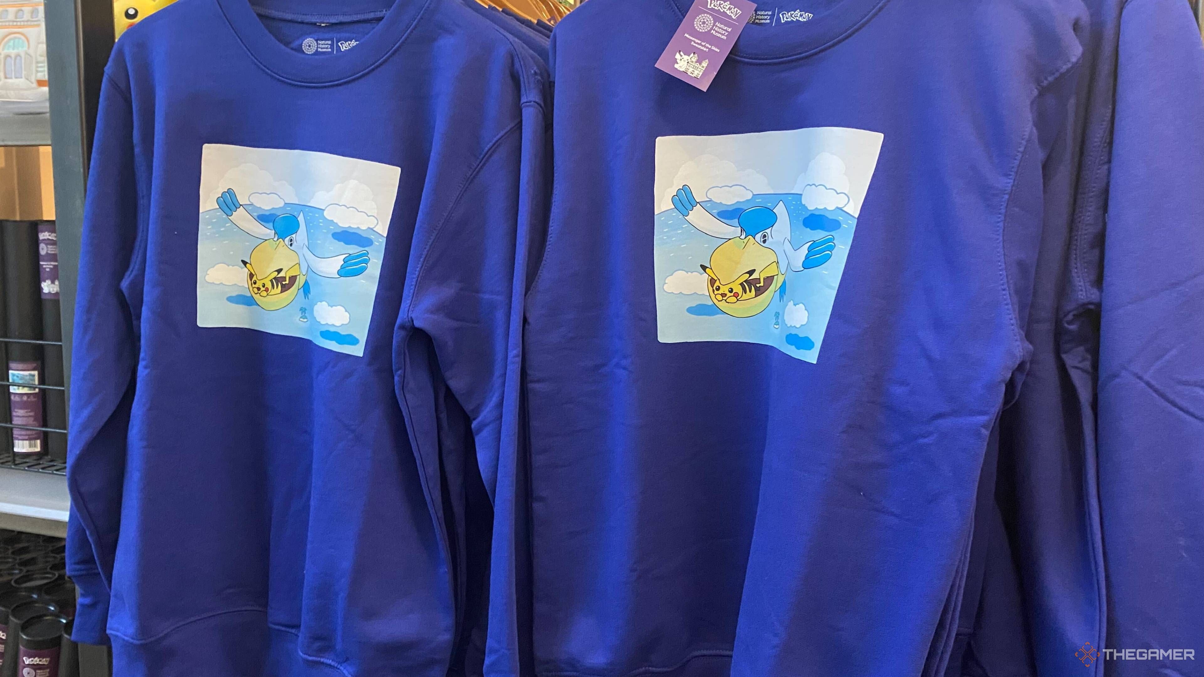 Непосредственно перед кассой есть небольшой отдел, посвященный Покемонам Водного типа. Моя любимая вещь там – толстовка с изображением Пелиппера, летящего над океаном, с Пикачу, сидящим у него в клюве! Там же можно найти художественный принт с изображением Пелиппера.