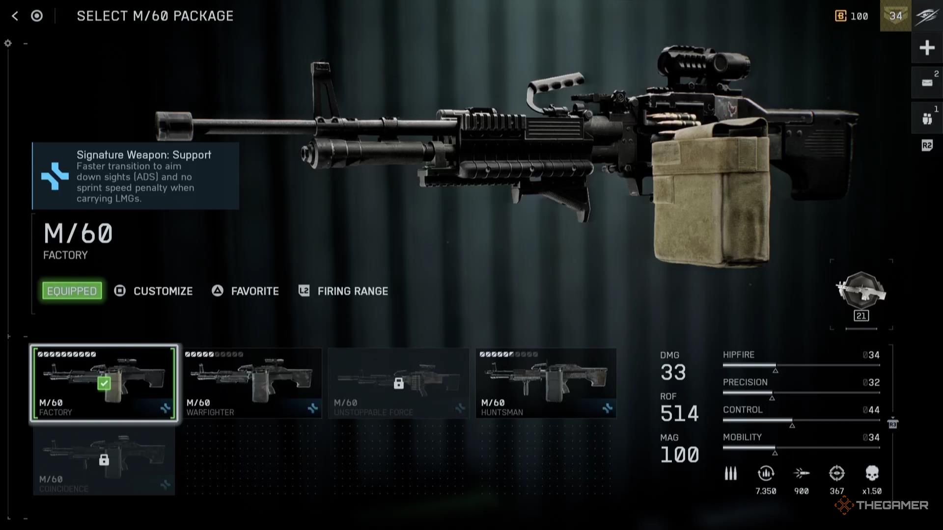 Класс Поддержки лучше всего проявляет себя с лёгкими пулемётами (LMGs). Они быстрее прицеливаются с этим оружием и не теряют скорость во время спринта.