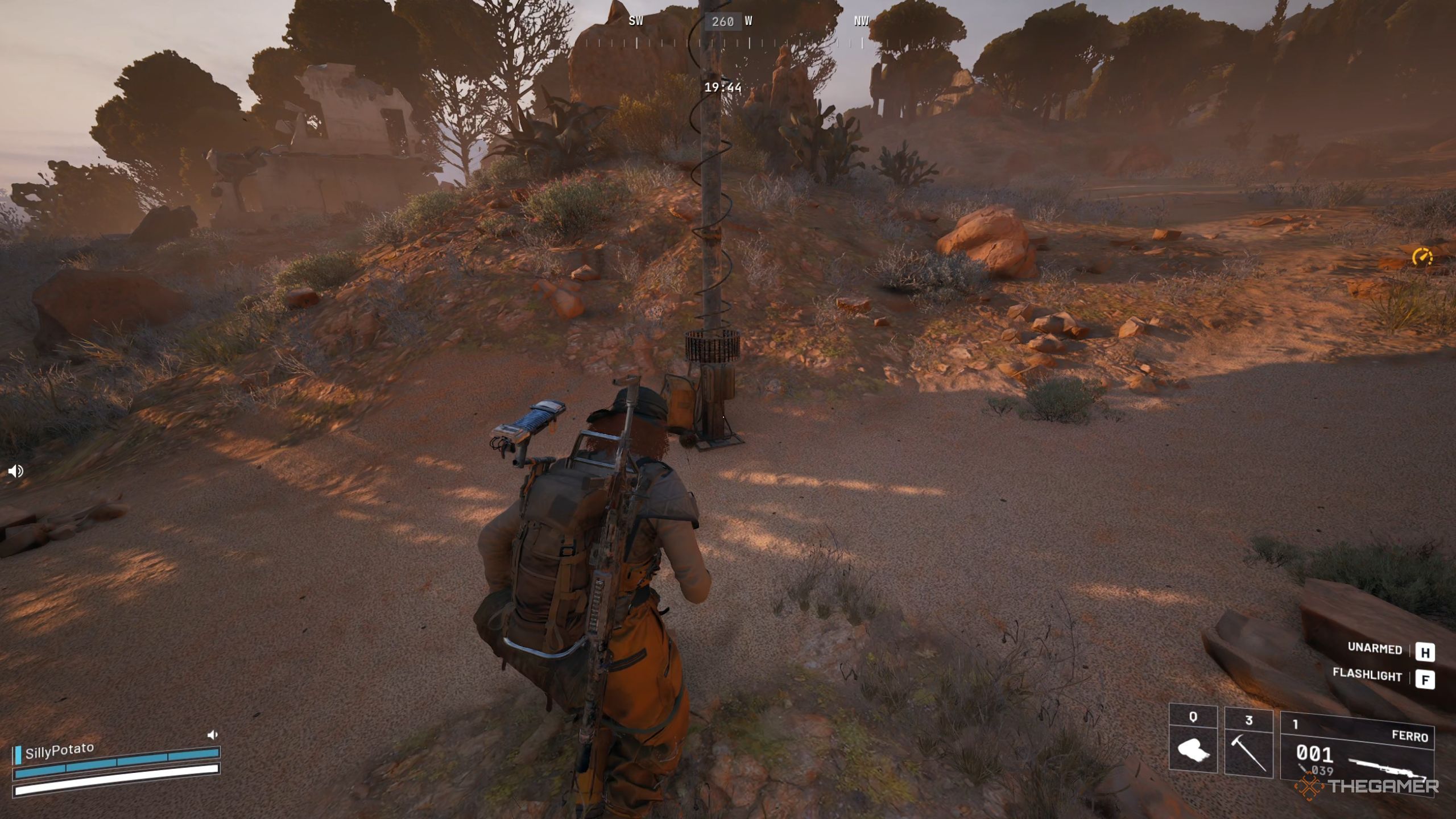 Последний переключатель находится немного дальше, но до него можно добраться, направившись на юг от ЭМИ-ловушки. По пути вы заметите еще один большой столб с проводом, подключенным к нему. Просто следуйте по этому проводу, и вы найдете переключатель рядом с деревом.