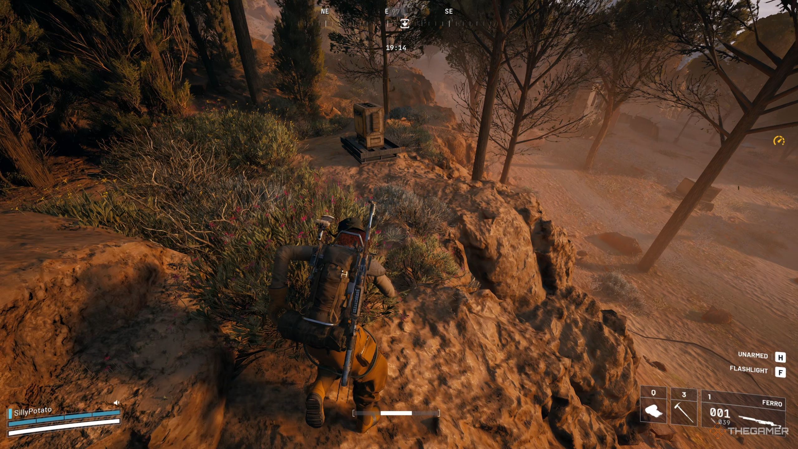 Чтобы найти первый переключатель, встаньте лицом на север рядом с тем местом, где он должен быть. Вы заметите небольшой утес, на который можно подняться, и рядом с ЭМИ-ловушкой вы должны увидеть белую часть переключателя.