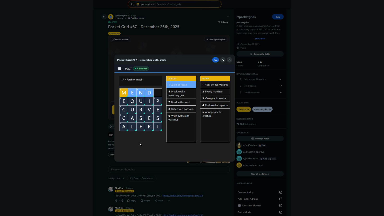 Устали бесконечно прокручивать Reddit? Почему бы не бросить вызов своему мозгу с Pocket Grid? Это быстрая Мини-кроссворд-головоломка, которую вы можете найти в боковом меню. Если вы новичок, Pocket Grid предлагает несколько вопросов, чтобы проверить ваши навыки, и не беспокойтесь – у нас есть ответы, если вы застрянете!