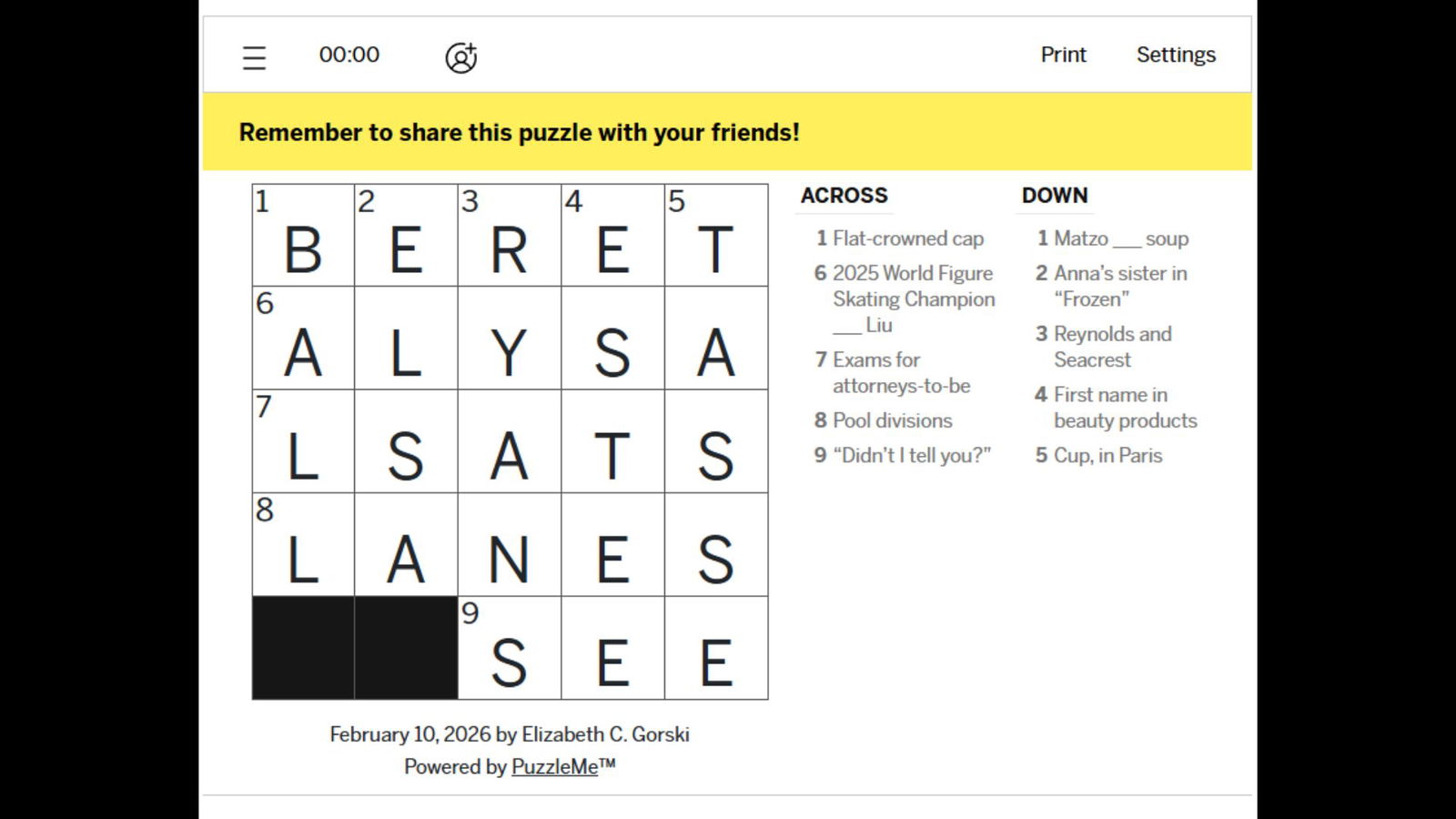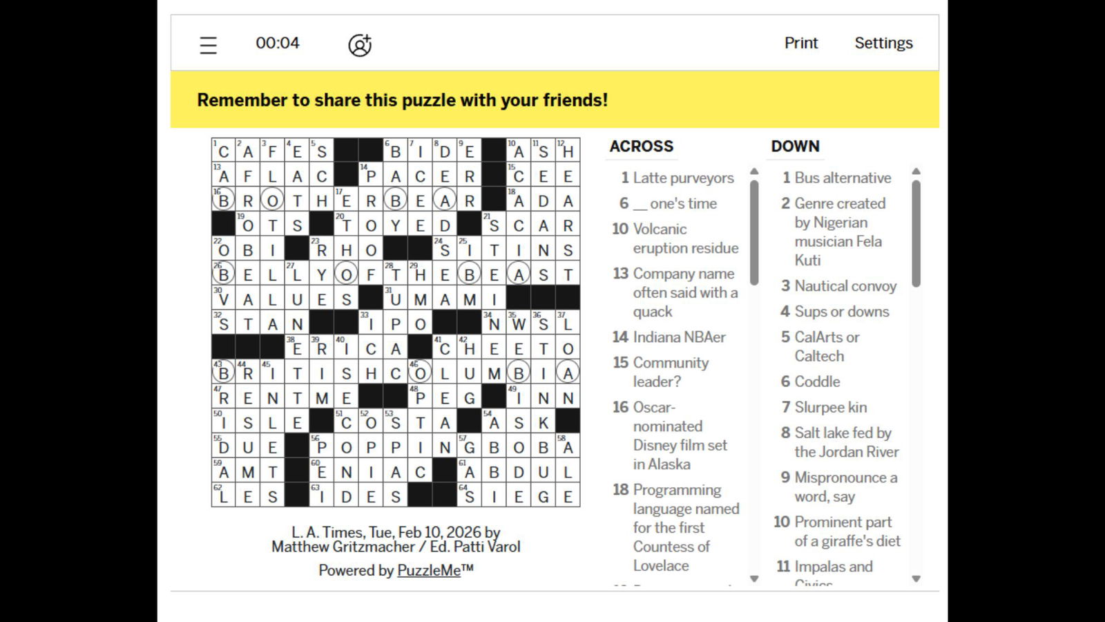 Ответы на кроссворд LA Times за 10 февраля 2026 года.