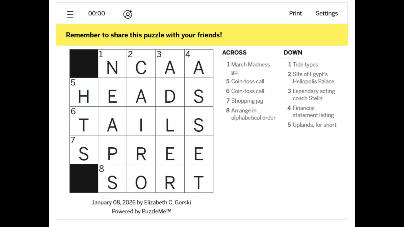 Решения мини-кроссворда LA Times от 8 января 2026 года.