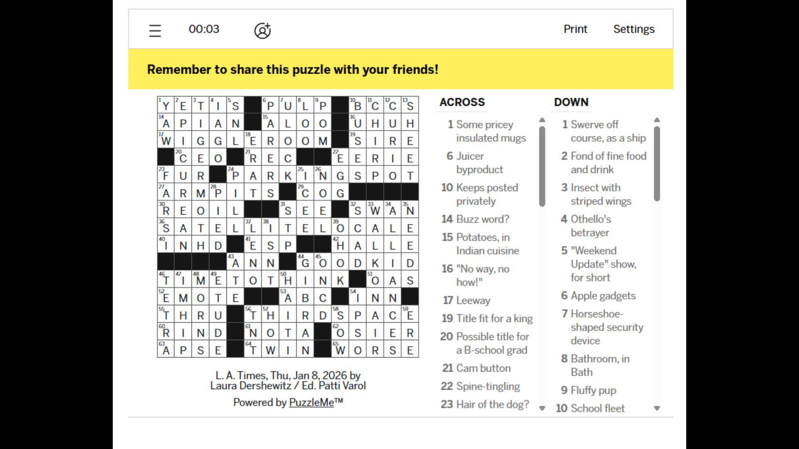 Решения кроссворда LA Times за 8 января 2026 года
