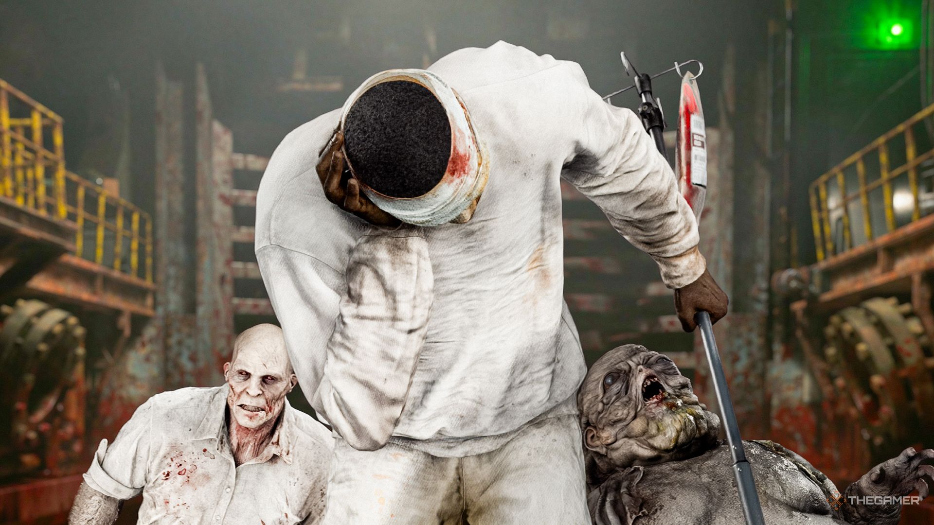 Шеф-повар довольно лёгок в победе по сравнению с Чанком, с которым слепой зомби тоже может справиться. Грейс, вероятно, стоило бы схватить эту IV-стойку! Если заставить зомби приблизиться к дверному проёму, пока Чанк тянется к вам и шумит, Чанк атакует и мгновенно убьёт его, даже на самой высокой сложности. Обычно вам нужно было бы либо вылить всё содержимое Requiem в лицо зомби, либо ударить его тремя гемолитическими инжекторами сзади, чтобы нанести столько урона.