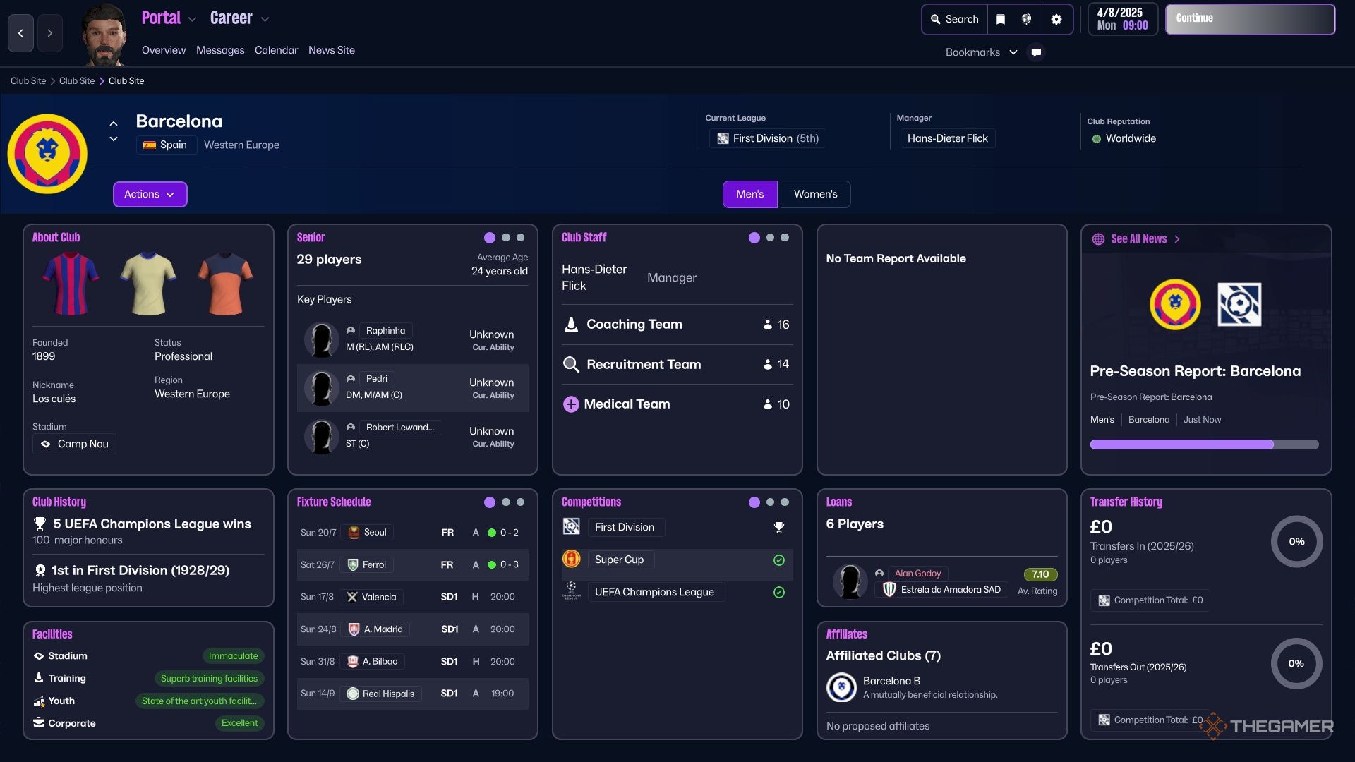 Иногда в Football Manager доставляет удовольствие управлять уже успешной командой, а не постоянно начинать перестройку. Barcelona предлагает вам возможность возглавить один из самых известных и престижных клубов мира.