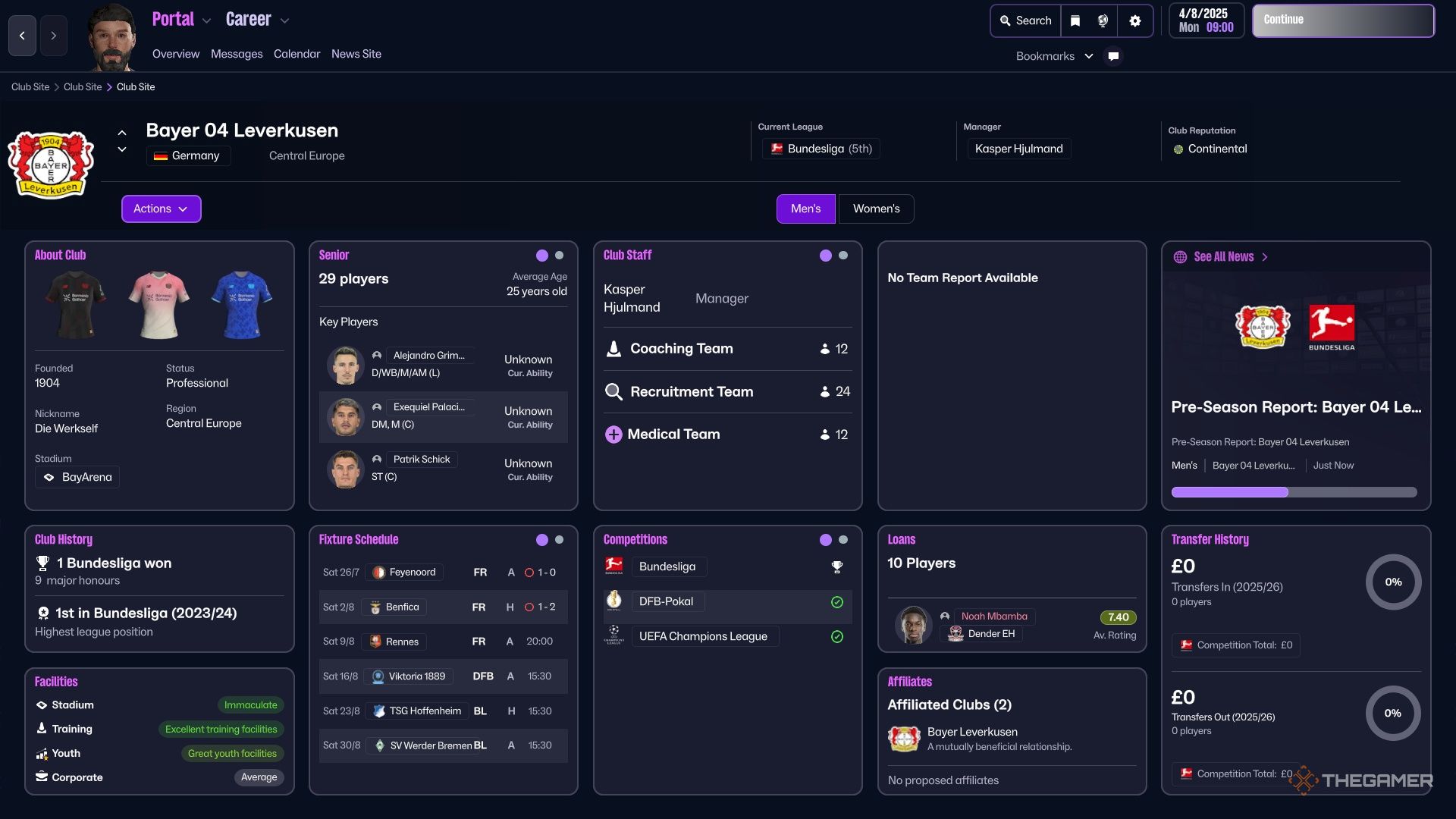 Многие ключевые игроки чемпионской команды «Байера» покинули клуб, включая таких звезд, как Флориан Виртц, Гранит Джака, Джонатан Та и Джереми Фримпонг. Это означает, что команде потребуется полная перестройка в течение нескольких лет, если они хотят снова бороться за чемпионский титул.