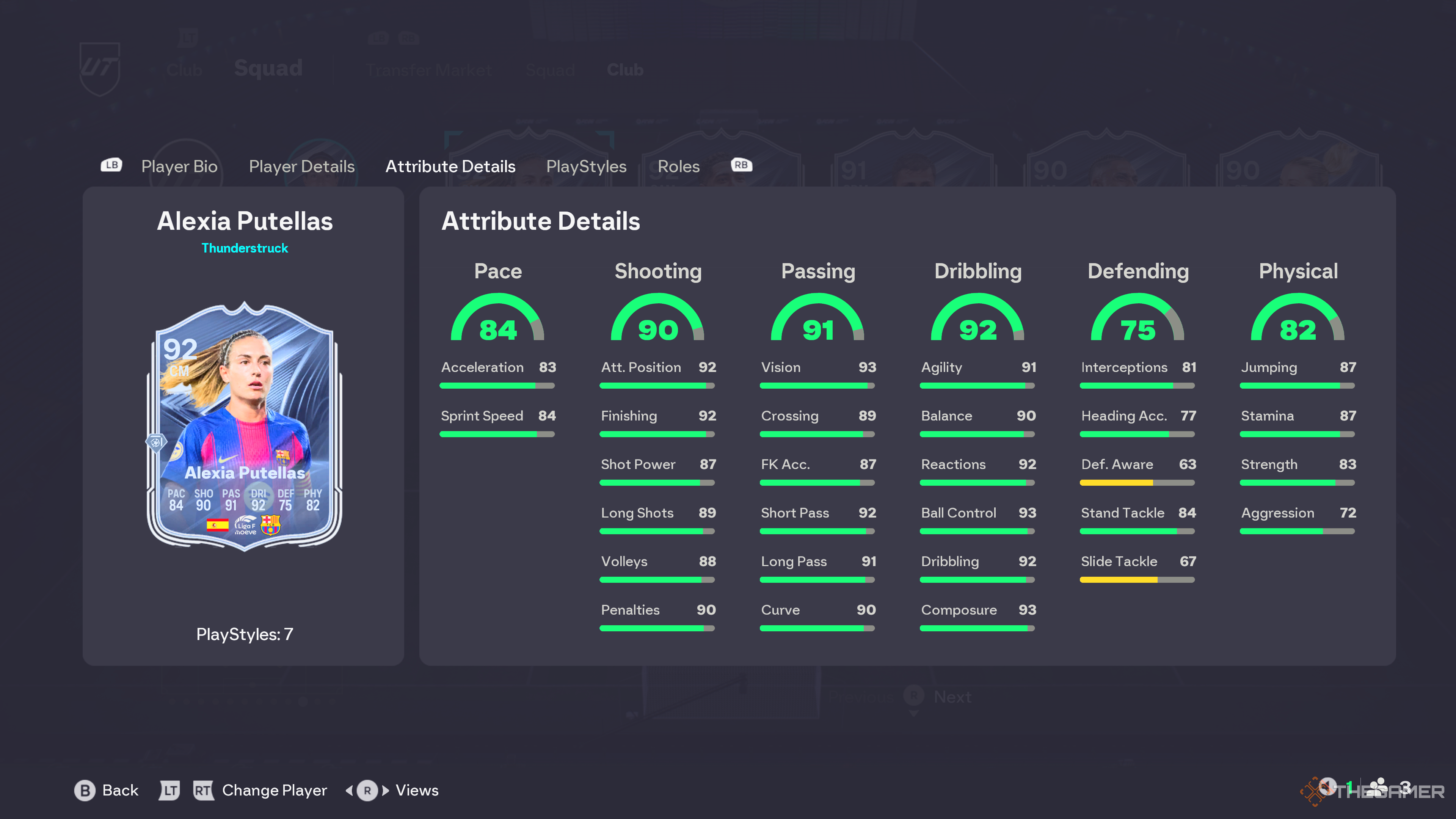 Навыки Путельяса – 90 ударов, 91 передач и 92 дриблинга – прекрасно сочетаются друг с другом, особенно когда у неё сильная командная химия. Чтобы получить от неё максимум, объедините её с игроками, такими как Клаудия Пина и другие товарищи по команде из Барселоны. Вы будете удивлены, насколько она может быть эффективна!