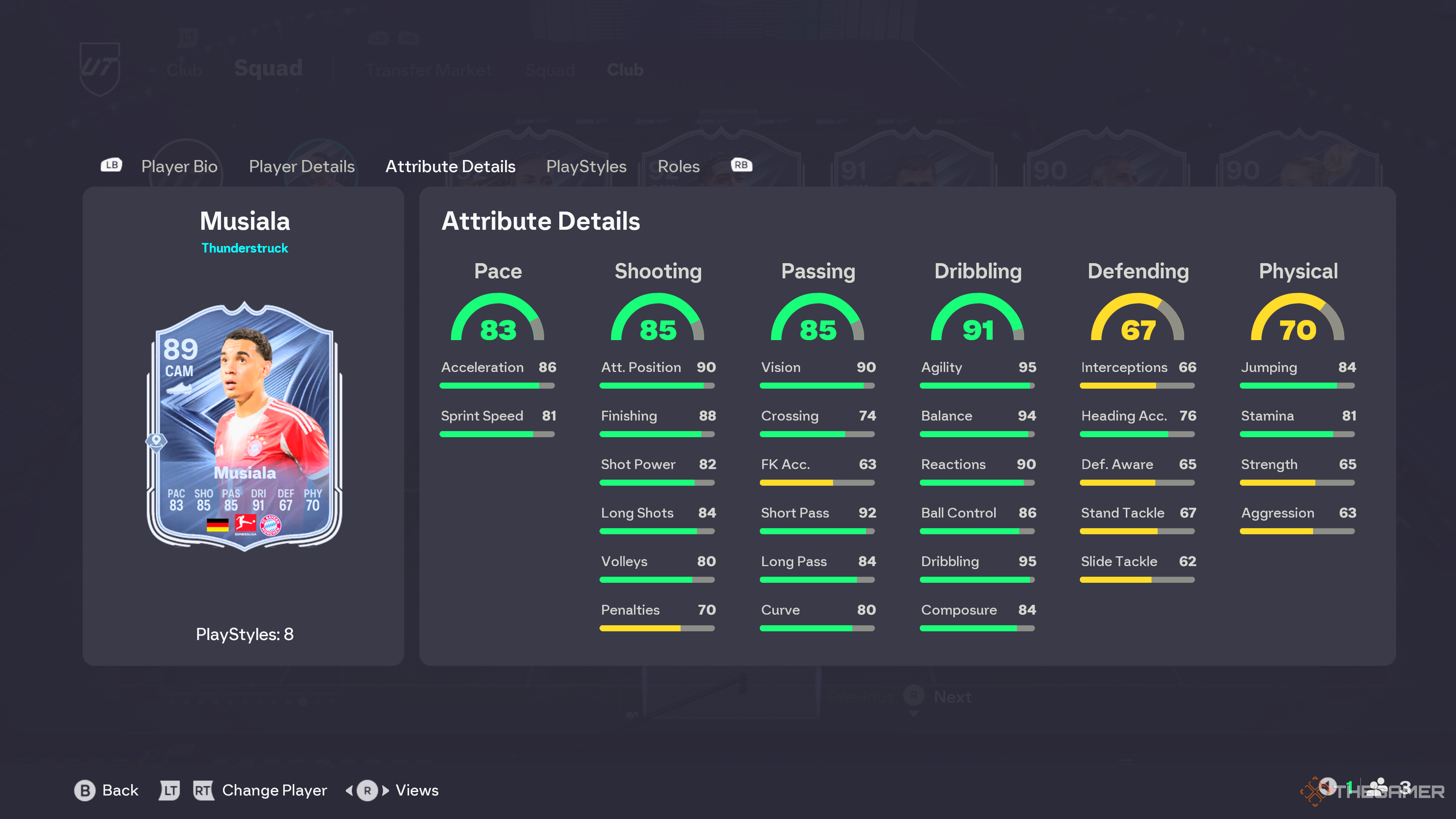 Джуд Беллингем – высококвалифицированный игрок с отличным контролем мяча, способный эффективно играть как атакующий полузащитник, так и нападающий. Он особенно силён в завершении атак, что делает его очень надёжным вблизи ворот. По сравнению с игроками, такими как Мусиала, он также обладает более мощным физическим присутствием в атаке, что даёт ему явное преимущество. Его связи с английскими клубами и Real Madrid означают, что большинство команд, вероятно, смогут построить свою схему вокруг него.