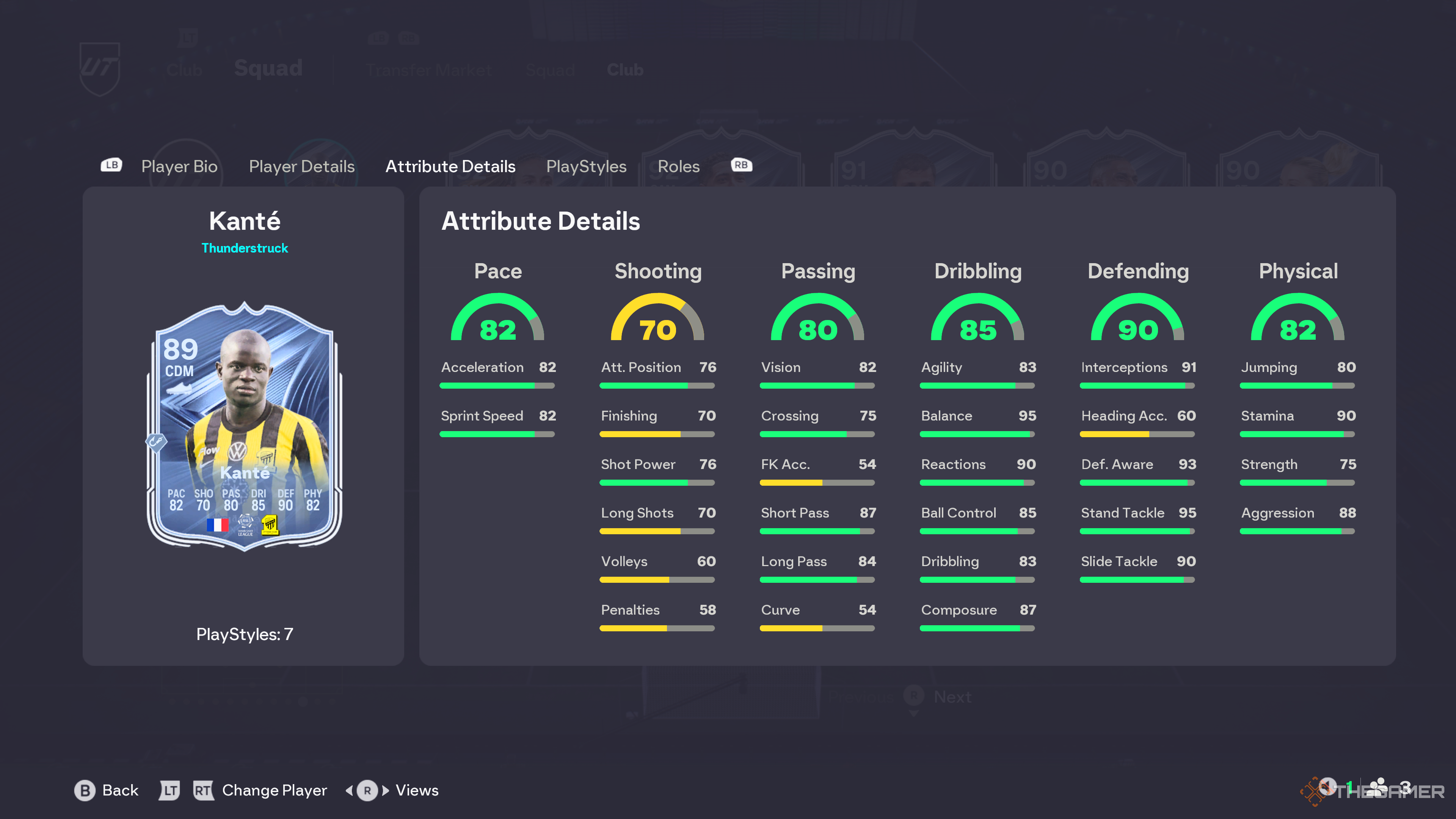 Н’Голо Канте был популярным выбором в составах FIFA Ultimate Team, когда он играл за «Челси», но его карточки сейчас используются не так часто, поскольку он играет в Саудовской Аравии. Специальные версии, такие как карта «Thunderstruck», напоминают игрокам, насколько он был доминирующим, предлагая отличную защиту и контроль над центром поля игры.