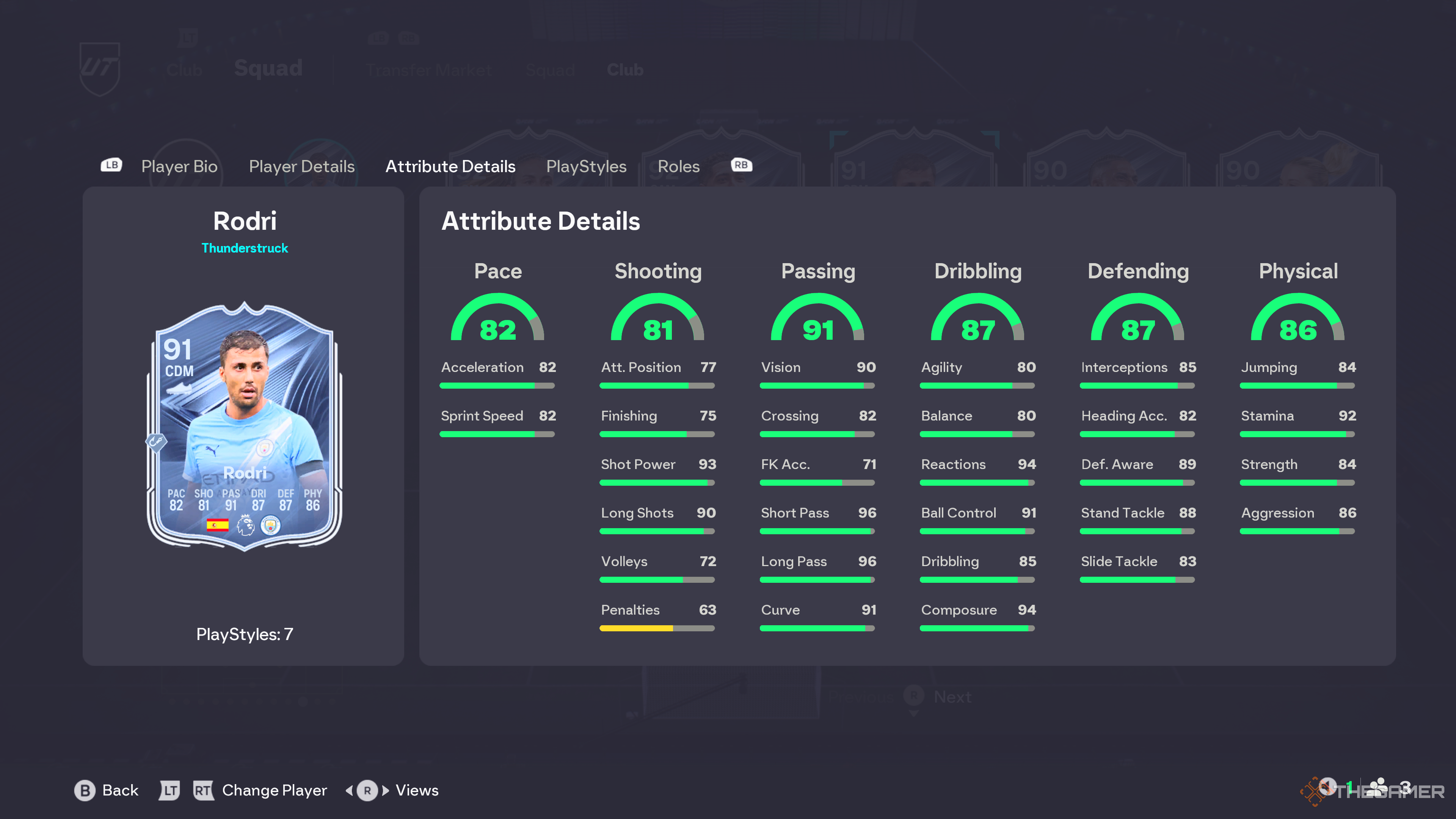 Окей, так Родри – зверь в полузащите – серьезно, он настолько надежен в обороне и контролирует абсолютно всё. Это делает его карточку одной из самых важных, которые можно получить в Ultimate Team. И с тем, как сейчас играет Man City, я ожидаю, что его карточка получит несколько крупных улучшений в ближайшее время. Честно говоря, я думаю, что эта Thunderstruck версия его станет одной из лучших универсальных карточек, которые мы увидим в этом году.