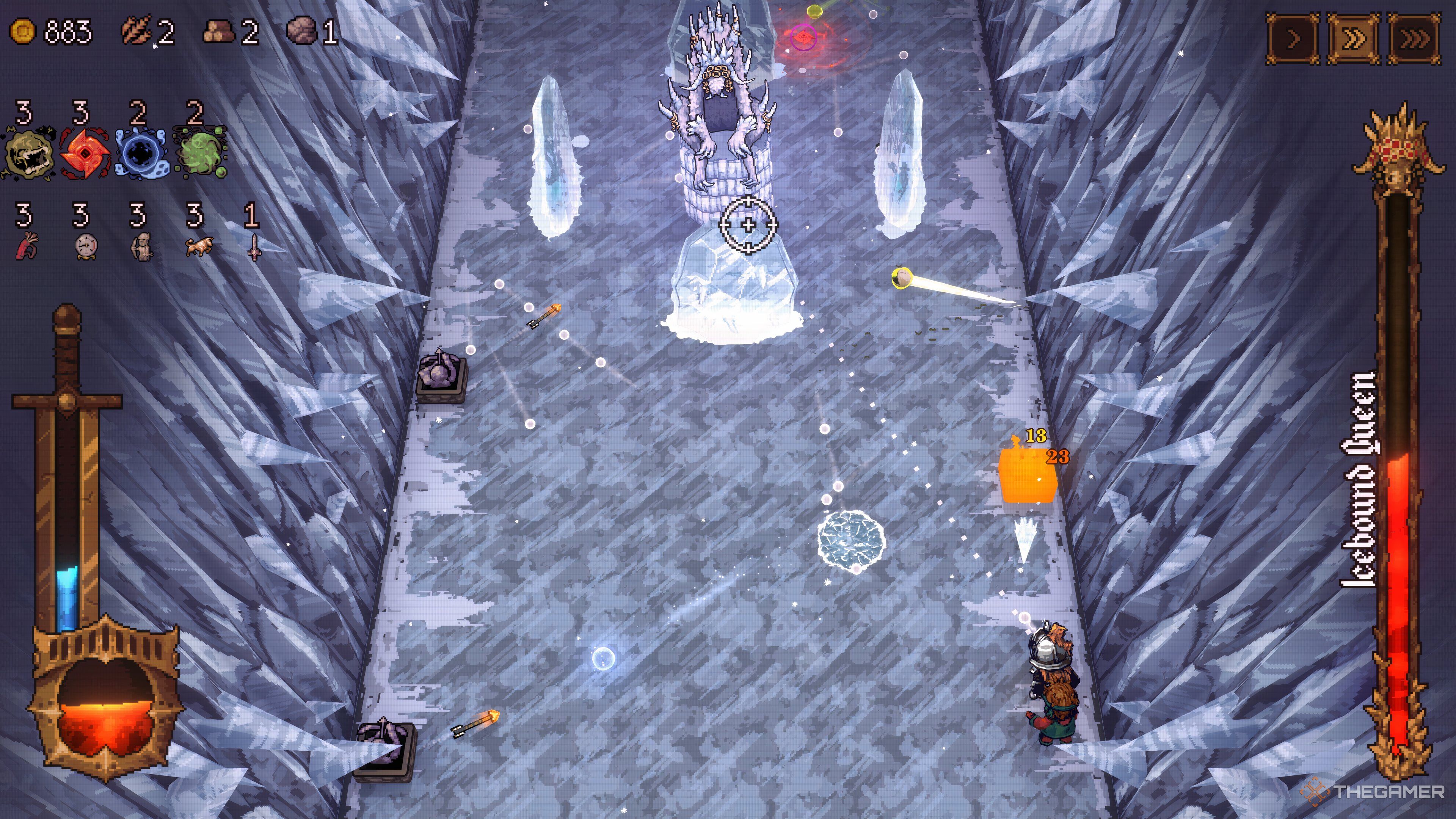 Несмотря на то, что вы сталкиваетесь с Ледяной Королевой относительно рано в Ball x Pit, она на самом деле очень сложный босс. Это в основном из-за четырех вращающихся ледяных стен, которые отражают ваши шары и защищают её от атак.